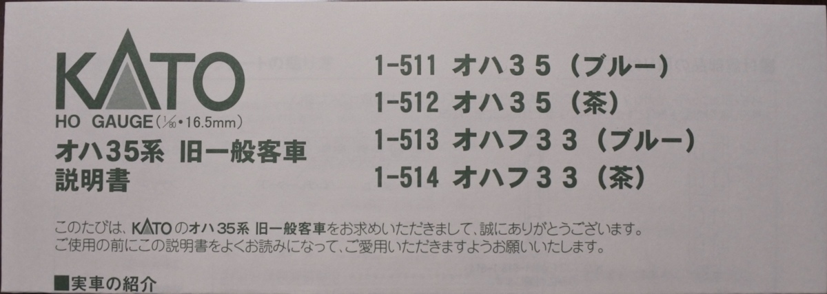 KATO 1-511 オハ35 (ブルー) 2両  *新品未走行*