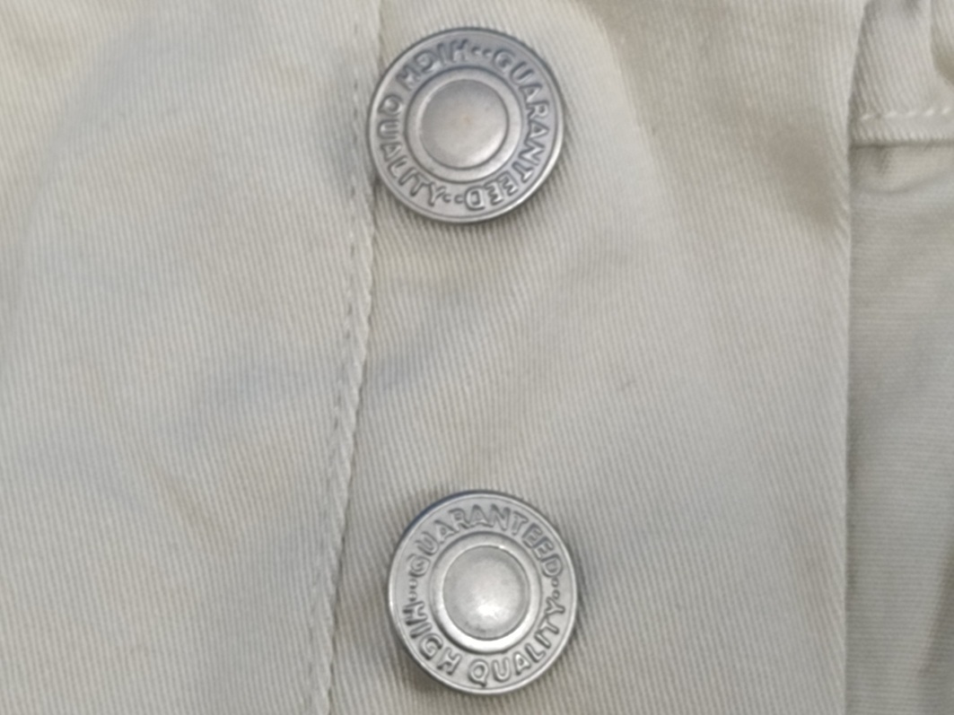 両サイドにフラップポケットが付いており、フロント部分は4ボタンになっています(写真6参照)。