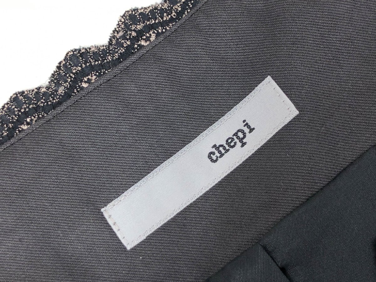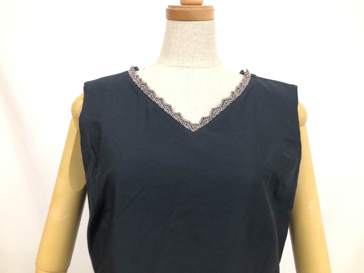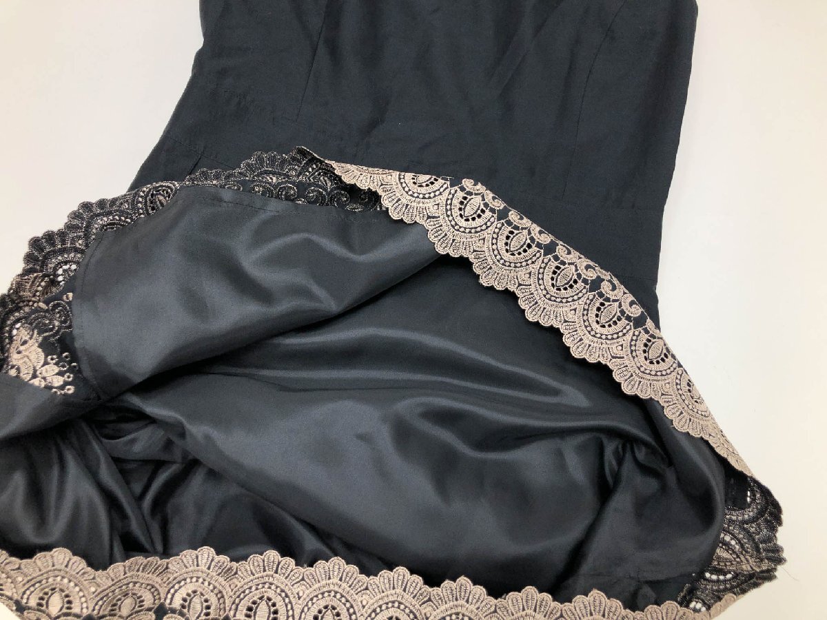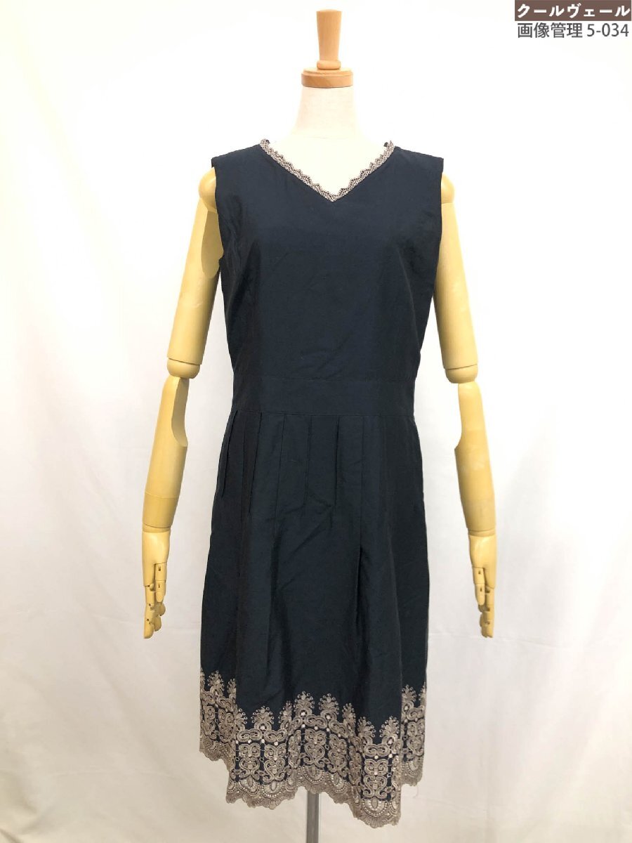 超美品【CHEPI シェピ】E-4438 レース刺繍 Vネック ノースリーブワンピース (レディース) size11R ブラック×グレージュ系 ◇17LO3751◇