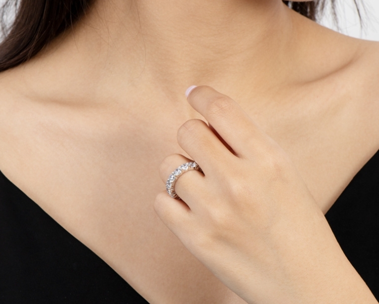 華やかな輝きを放つ、直径4mmのCZダイアモンドを散りばめた、フルエタニティリングです。シンプルながら存在感のあるお品です。重ね付けにもおすすめです。