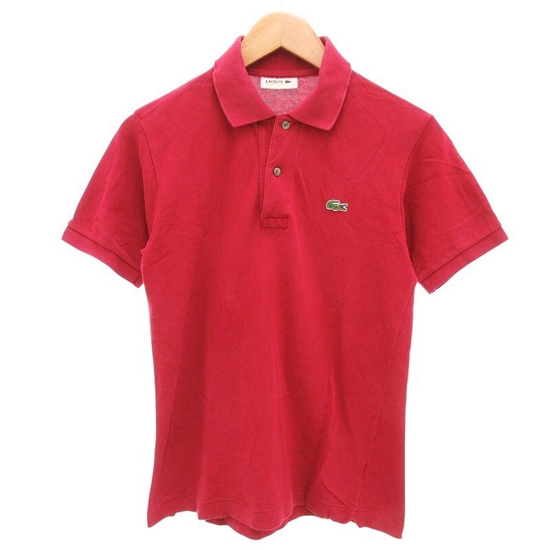 ラコステ LACOSTE ポロシャツ 鹿の子 ロゴ刺繍 日本製 半袖 2 赤 レッド /FF ■MET1 メンズ