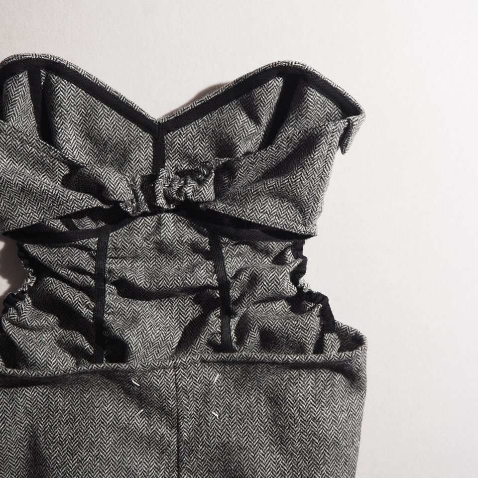 R0209P ▼Maison Margiela 1 10 メゾンマルジェラ▼ 22AW ウールヘリンボーン ベアトップ ボディスーツ グレー 40 秋冬 rb mks