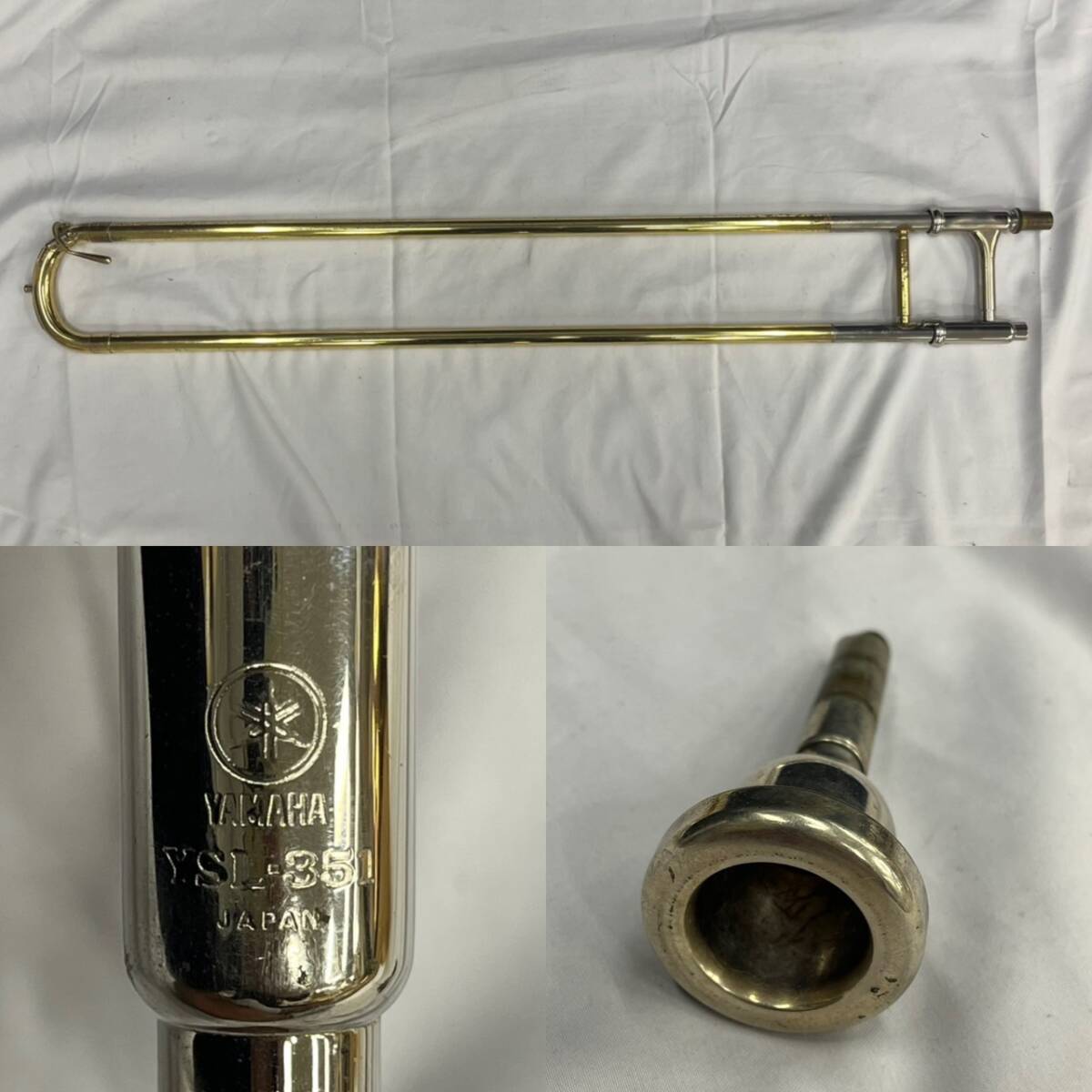 商品名 ・【幕張】YAMAHA トロンボーン YSL-351 ヤマハ ケース付き 楽器 ブランド ・YAMAHA 付属品 ・ケース サイズ ・(縦)約25cm × (横)約118cm × (奥)約22cm ※若干の誤差がある場合がございます。 状態について ・ランク →【C】 キズ・汚れ・型崩れなどの目立つ使用感がありますが、ご使用には問題のない商品です。 ・コメント →へこみやサビがあります。(画像7参照) ───────────────[ 状態ランク表 ]──────────────── 【N】 新品・未使用品の新古品です。 【S】 キズ・汚れがほとんど見受けられず、非常に状態の良い商品です。 【A】 わずかにキズ・汚れがありますが、全体的に状態の良い商品です。 【B】 キズ・汚れなど、使用感が見受けられますが、 中古品としては比較的良好な状態です。 【C】 キズ・汚れ・型崩れなどの目立つ使用感がありますが、ご使用には問題のない商品です。 【D】 通電の確認はできておりますが、稼働や動作の確認は行っておりません。 【E】 破損や欠損などが見受けられる商品ですが、素材やパーツとしての価値があり、リメイクや部品取りにおすすめの商品です。 ※ランクは社内基準となりますので、参考としてご参照ください。 ──────────────────────────────────────── 送付方法 ・ゆうパック(着払い) 140サイズ ※千葉市美浜区からの発送となります。 ※出品時に商品を梱包しているため、「同梱不可」となります。 | |||