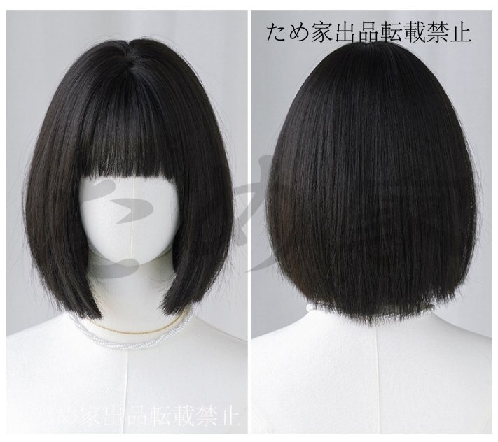 新品人毛 ショートストレート クール系 ブラックティーブラウンカラー ウィッグ つむじ部分手植え 自然に見えますフルウィッグ