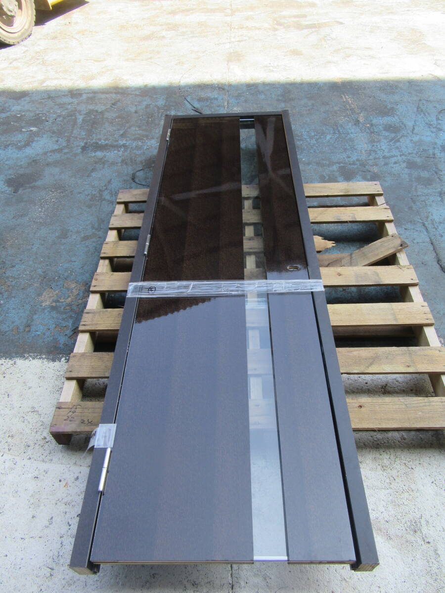 ドア本体枠寸法は2205㎜×695㎜。厚みは90㎜。  内寸は2145㎜×605㎜。