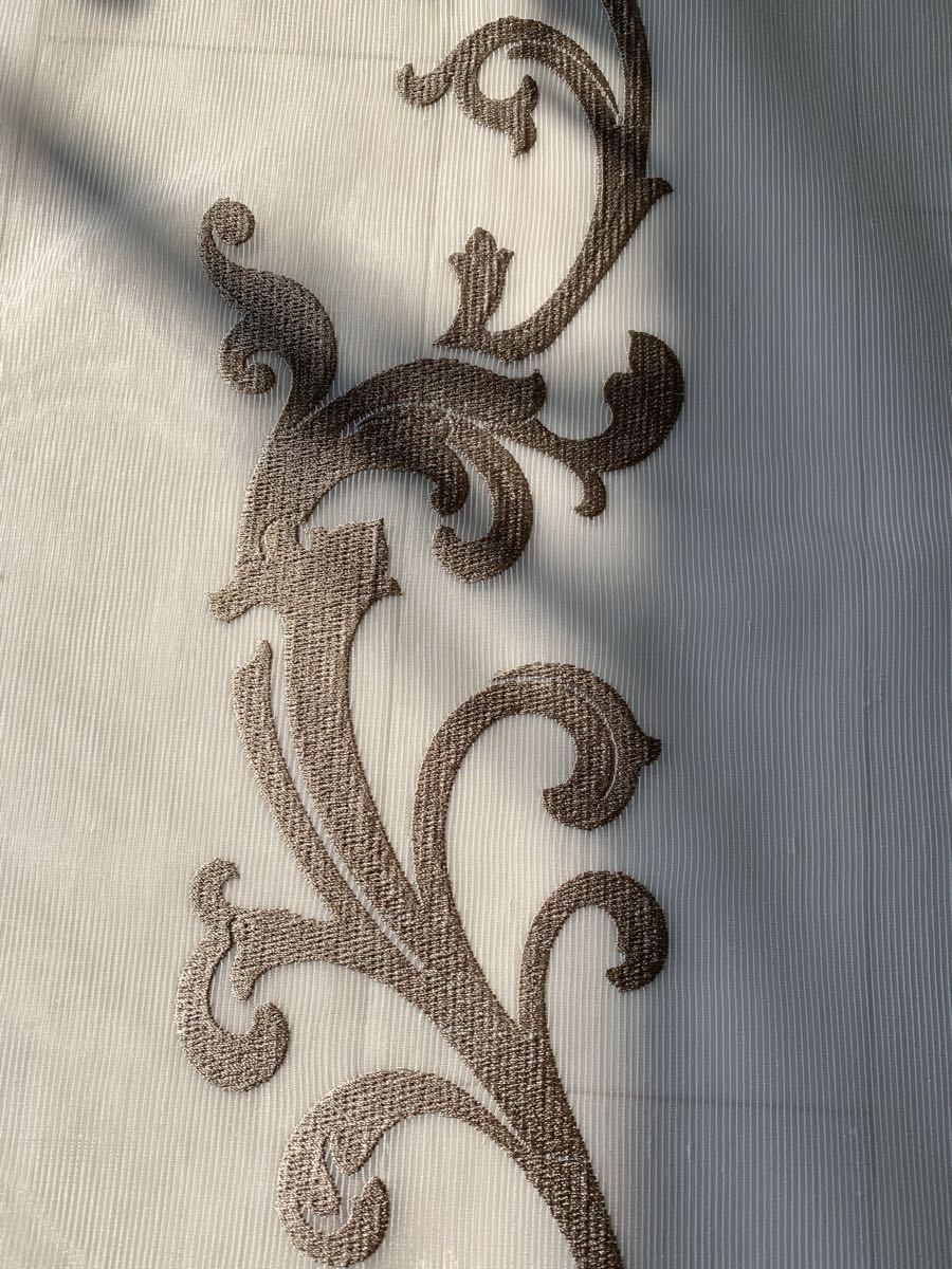●大変珍しいヨーロッパ、モダンでクラシックな雰囲気漂うお洒落な、立体刺繍のカーテン用レース生地●手に取ると心奪われる素敵なデザイン●是非、色んな用途にご利用下さい●