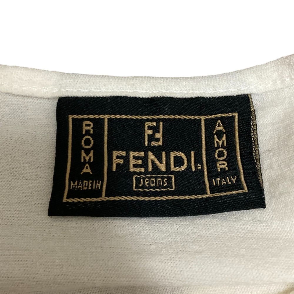 美品 FENDI jeans フェンディ ロゴプリント クルーネック ノースリーブ カットソー Tシャツ I42 ホワイト