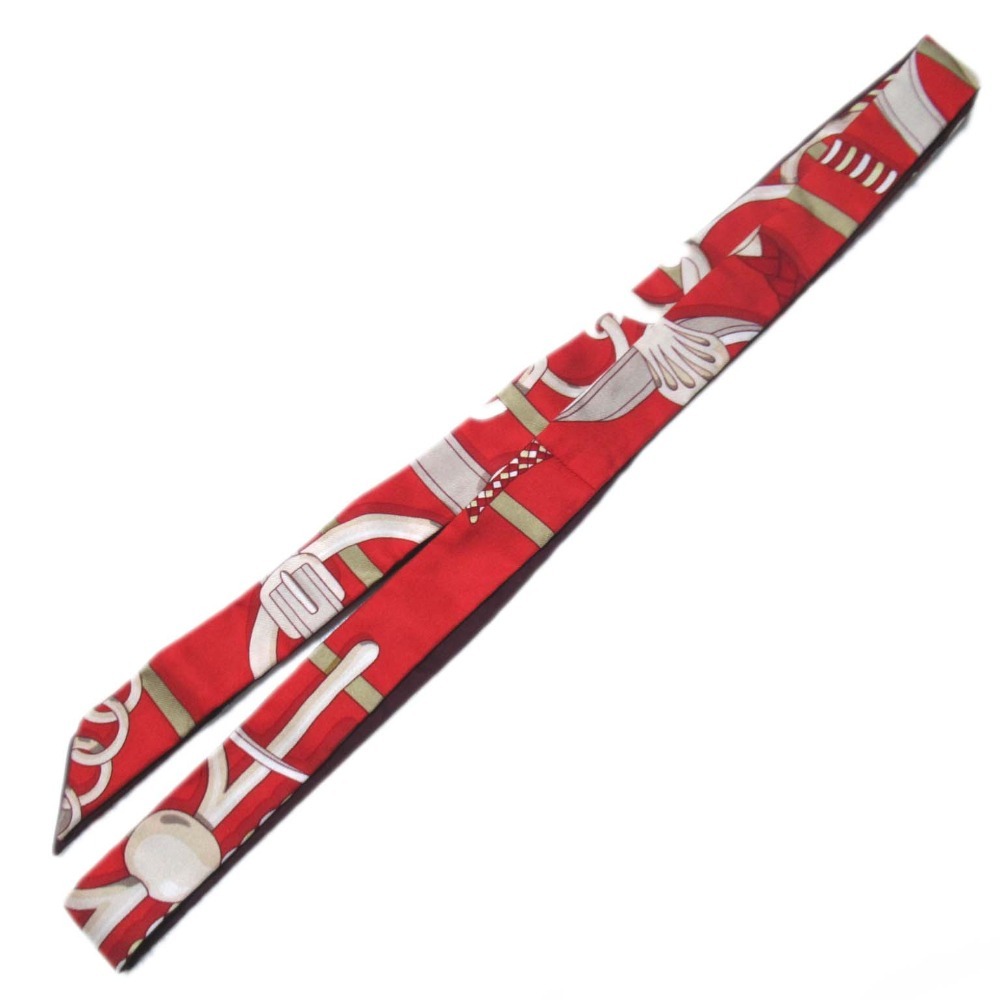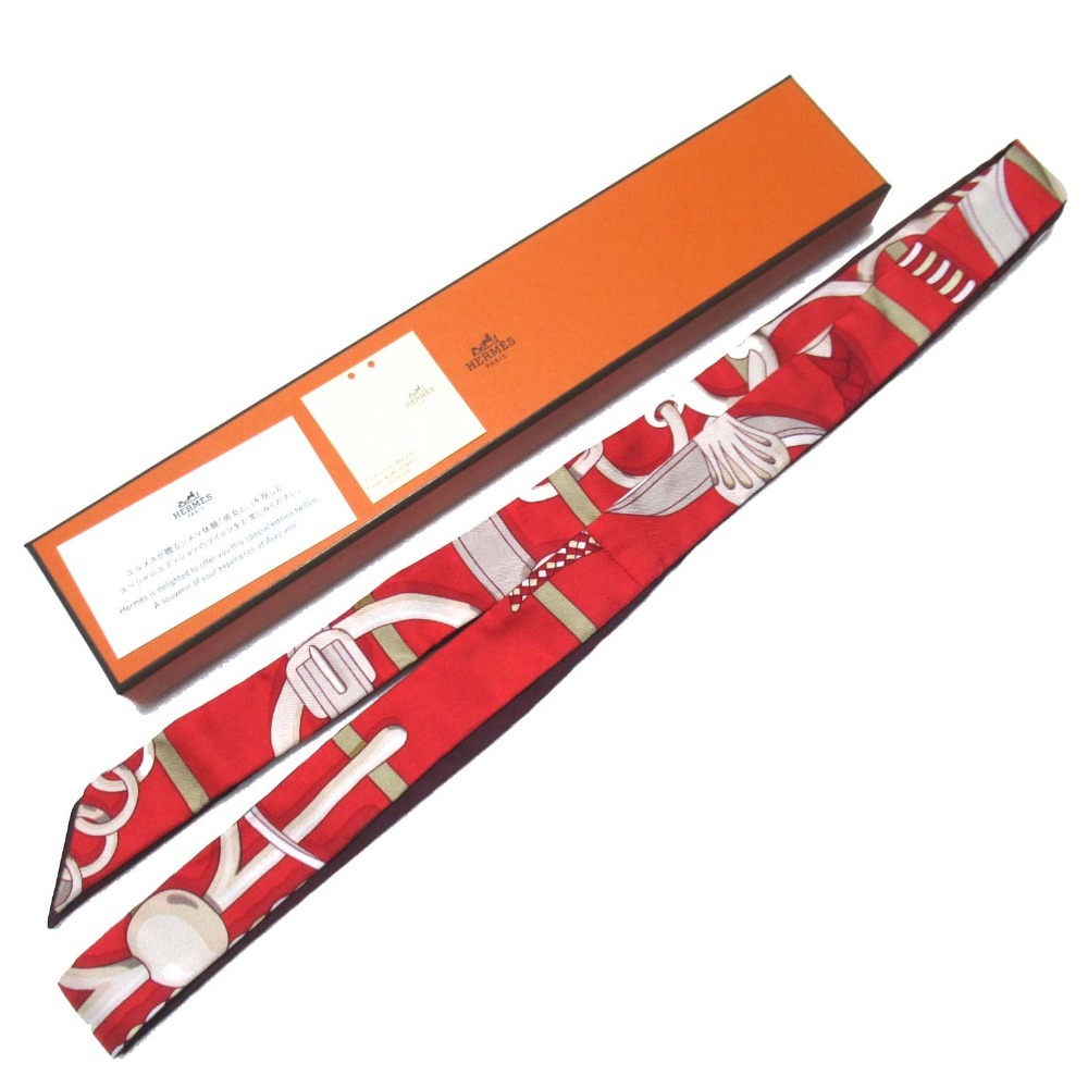 美品 18AW HERMES エルメス ノベルティ品 彼女と 展示会 ツイロン ツイリー スカーフ レッド