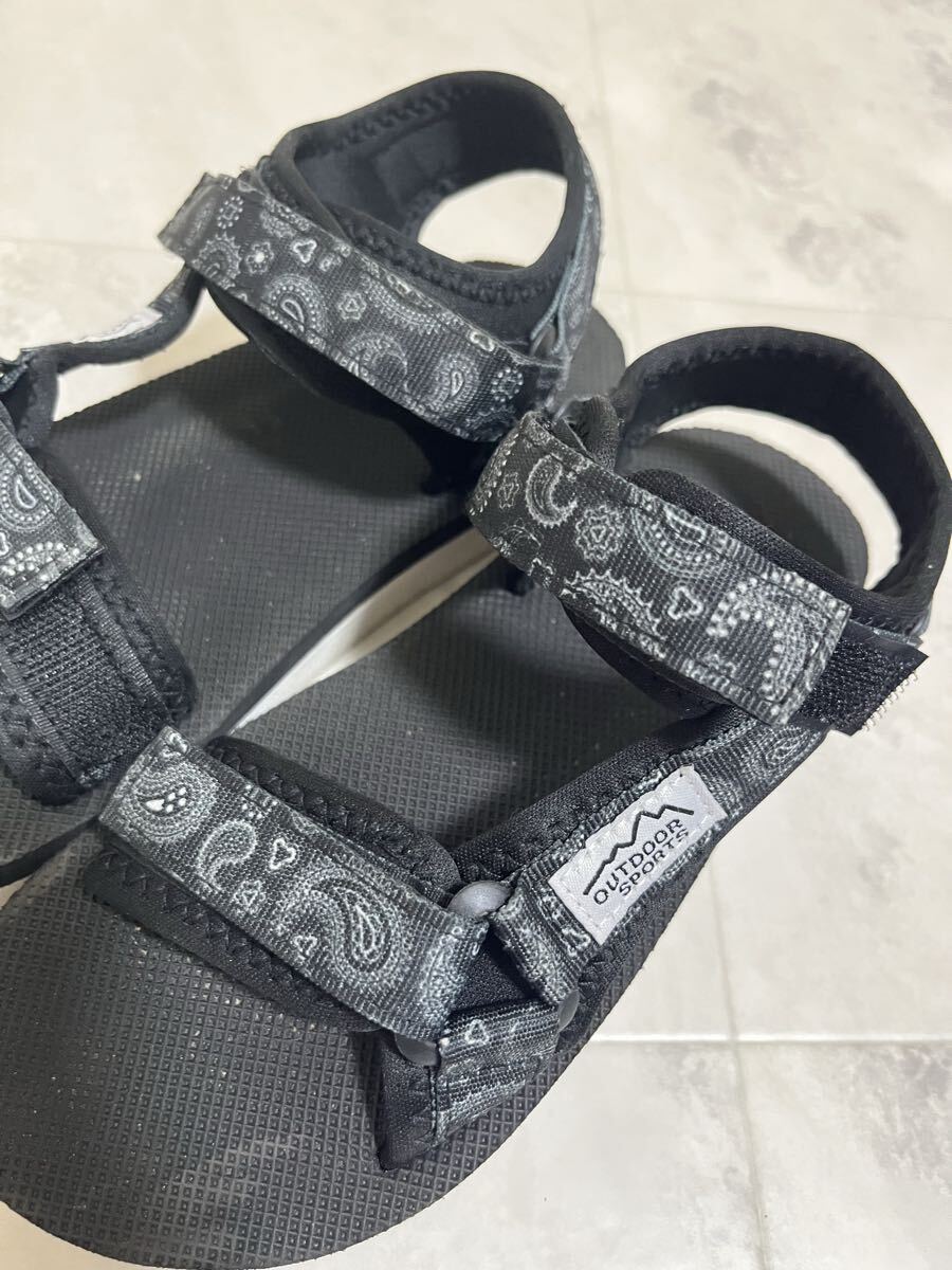 OUTDOOR SPORTS バンダナ柄 ブラック 黒 ストラップサンダル 22.0