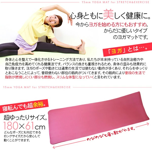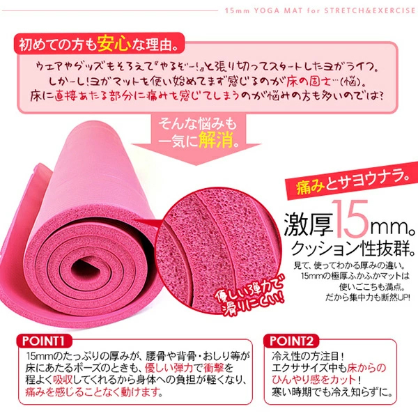・自宅で手軽に本格エクササイズができるヨガマットに15mmタイプが新登場。