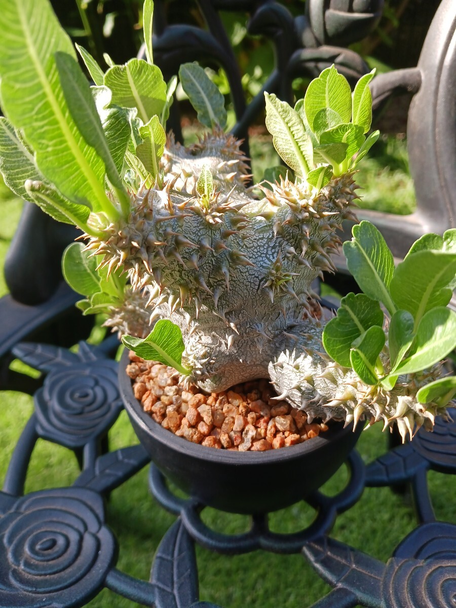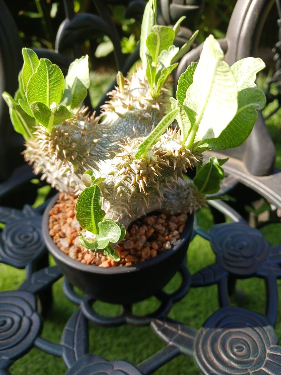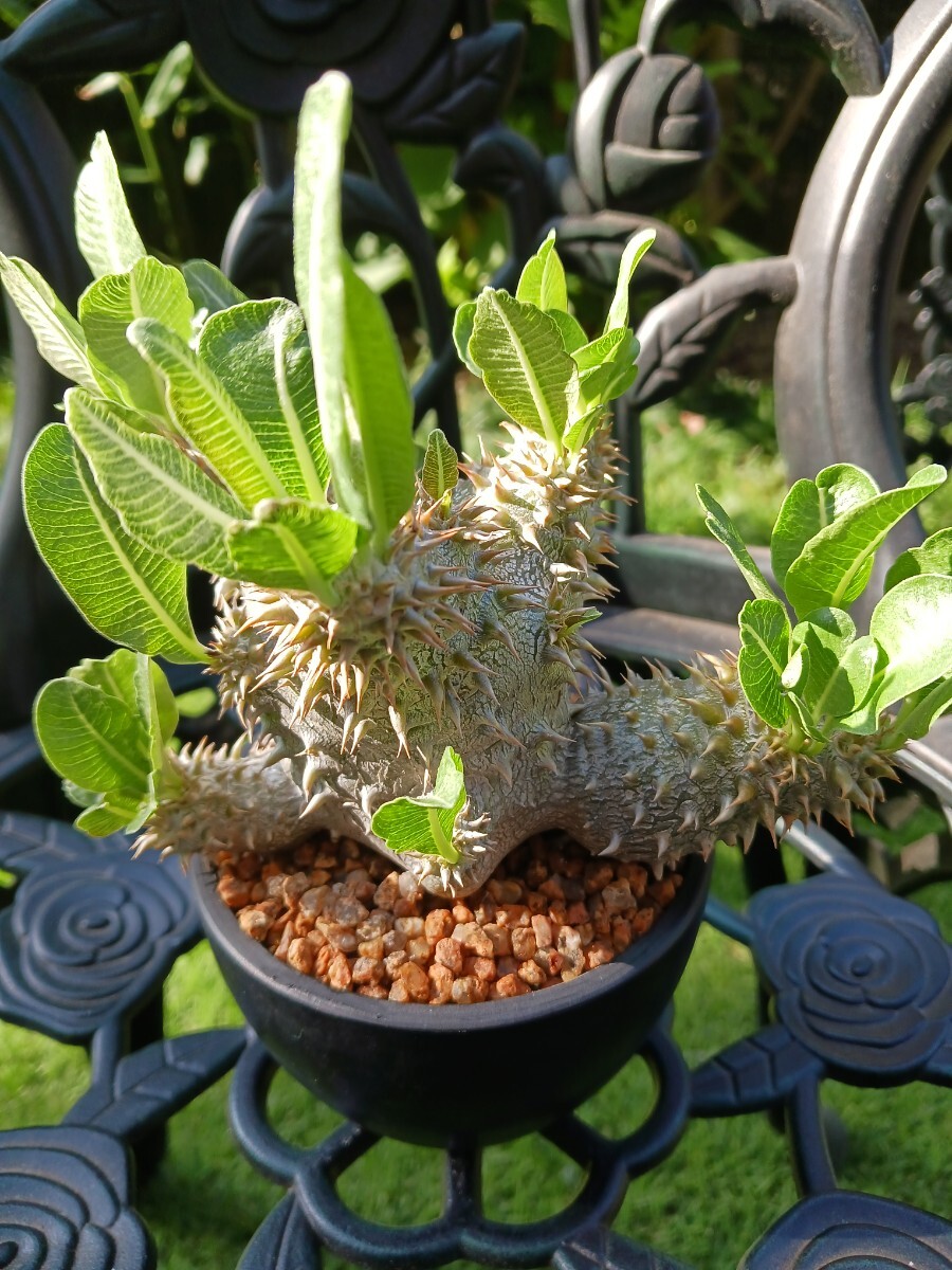 成長と共に鉢の形状とのバランスが崩れてしまったので高さ65ミリ、直径90ミリの黒い樹脂製のボウル型鉢に植え替えて管理しています。
