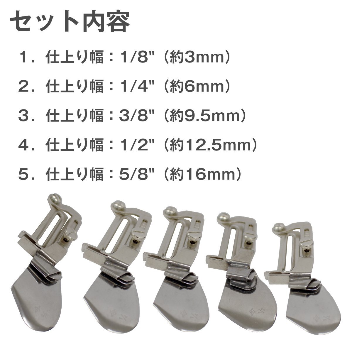 【新品即納】三つ巻 ミシン 押さえ 5種セット 回転式 5サイズ (3mm 6mm 9.5mm 12.5mm 16mm) 職業用 家庭用 工業用 ラッパ 裾縫い 端まき
