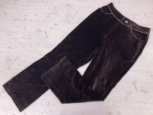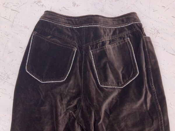 伊太利屋 イタリヤ オールド レトロ モード 古着 ラインストーン ブーツカット ベロアパンツ ボトムス レディース 9号 紫~焦げ茶 です。