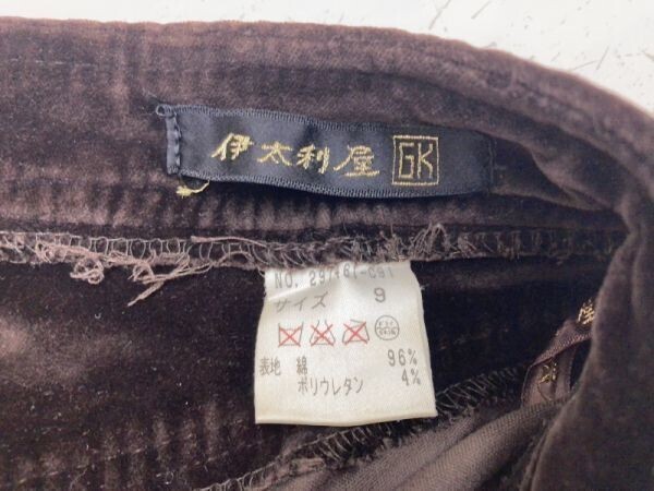 伊太利屋 イタリヤ オールド レトロ モード 古着 ラインストーン ブーツカット ベロアパンツ ボトムス レディース 9号 紫~焦げ茶
