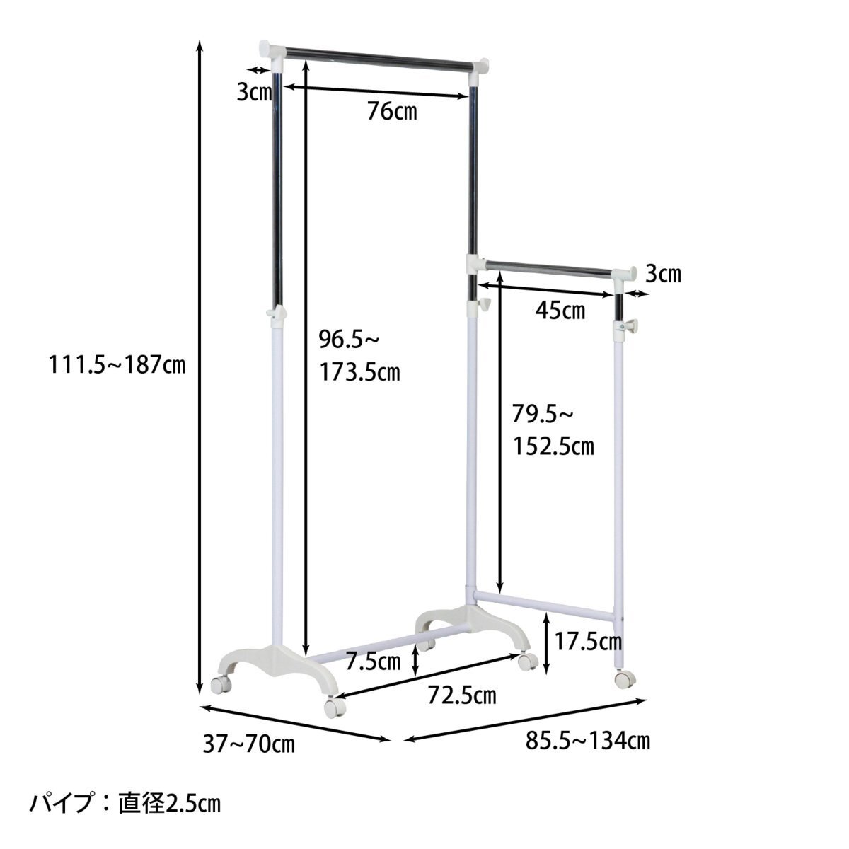 | サイズ | 約幅85.5×奥37×高111.5~187cm 本体耐荷重:20kg 耐荷重(拡張部分):10kg パイプ直径:25mm |