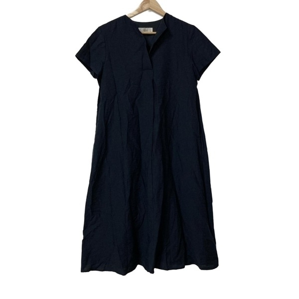 レリアン Leilian サイズ7 S - ネイビー レディース 半袖/ロング/麻混 美品 ワンピース
