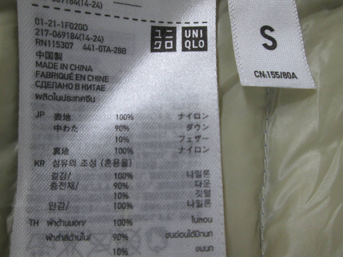 【0827n O19040】 ユニクロ ダウンジャケット ウルトラライトダウン レディース S ライトブルー 袋付き