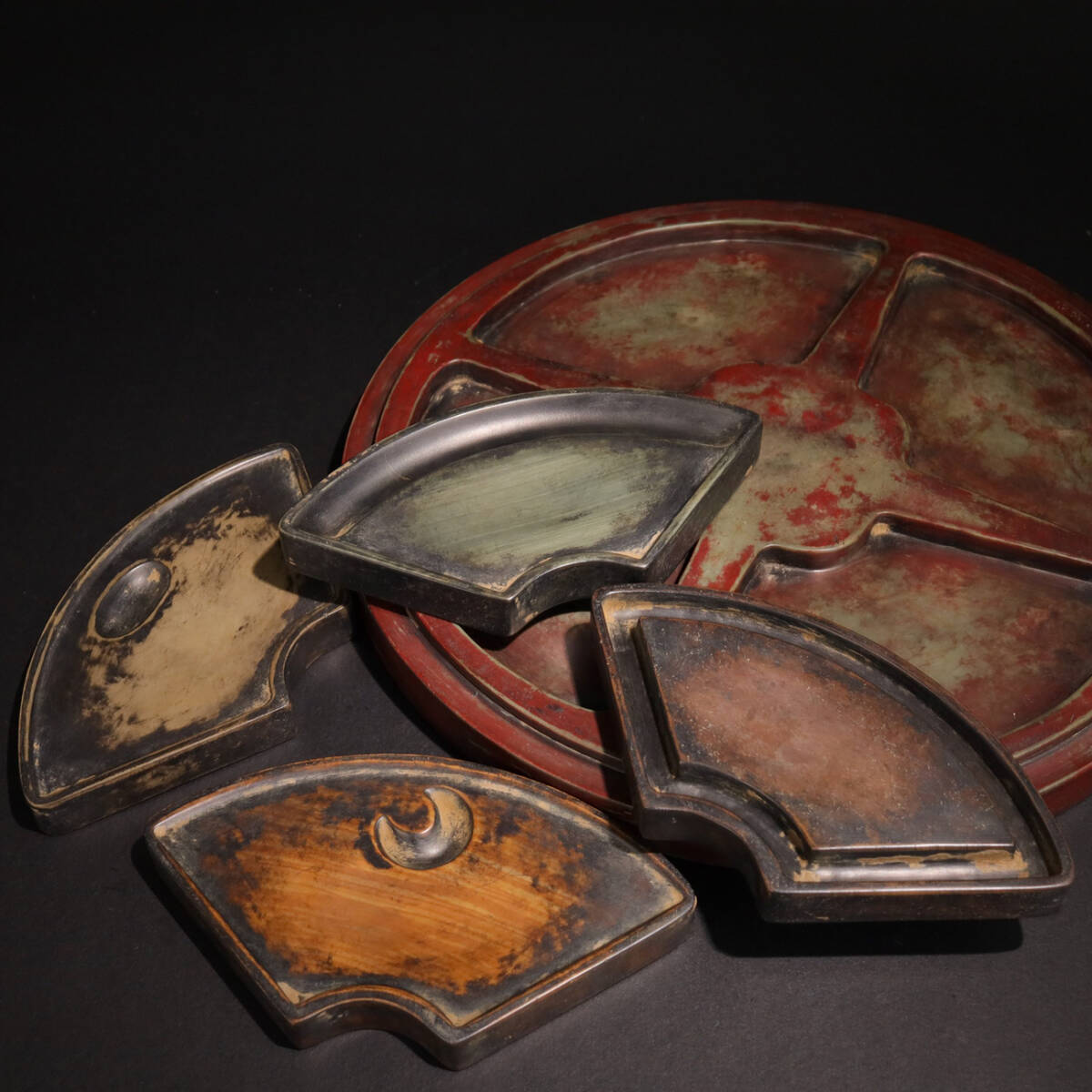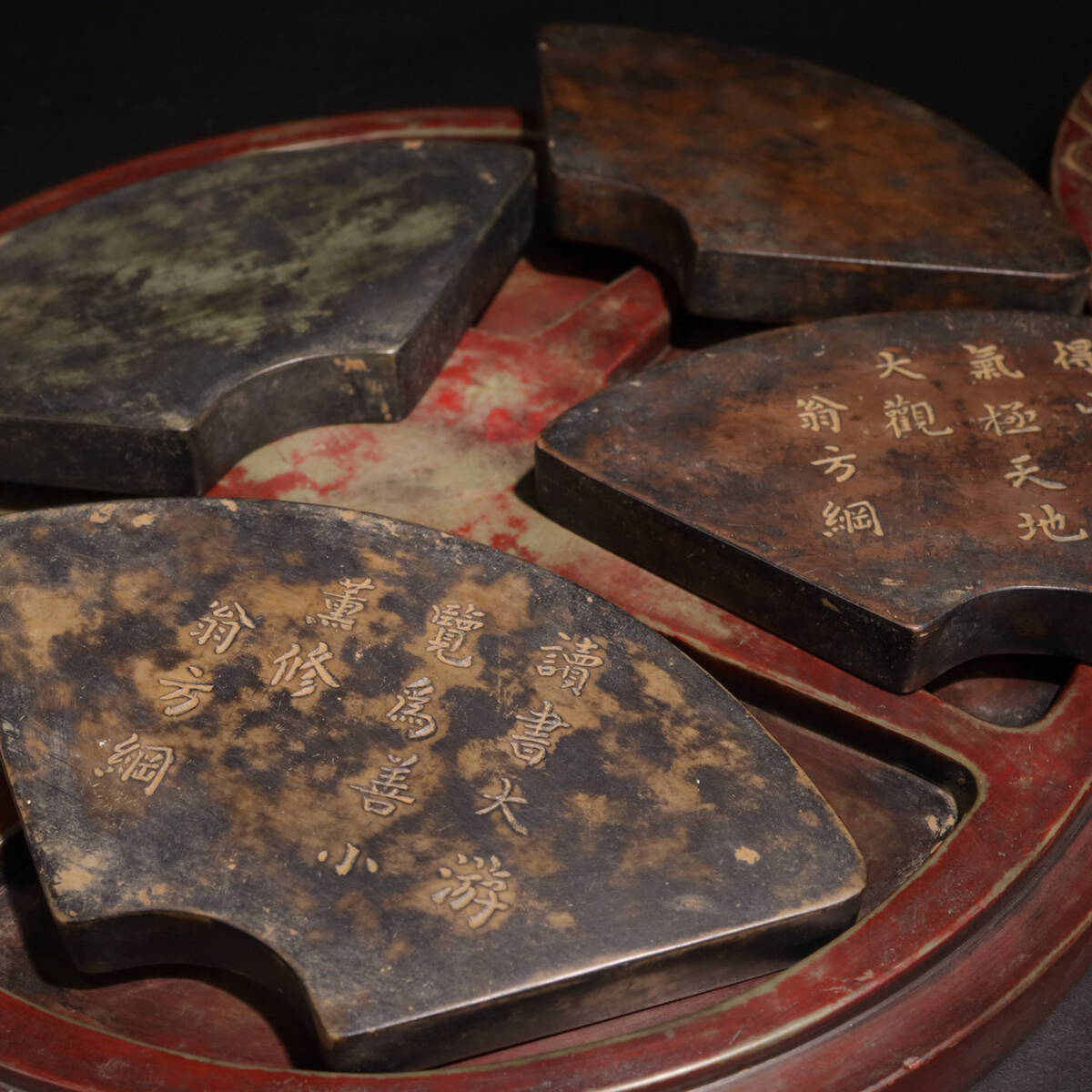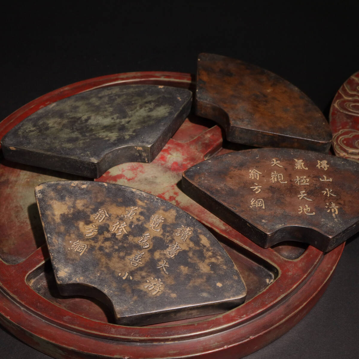 ◆御泓軒◆『清時代 松花石硯 高官厚禄紋套硯 翁方綱銘』極細工・古賞物・中国古玩・中国古美術