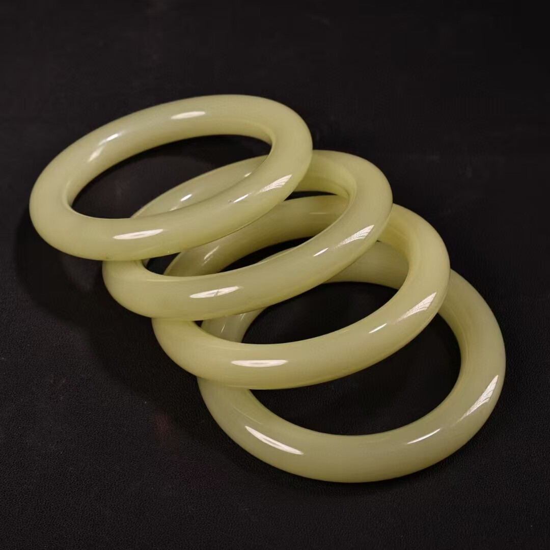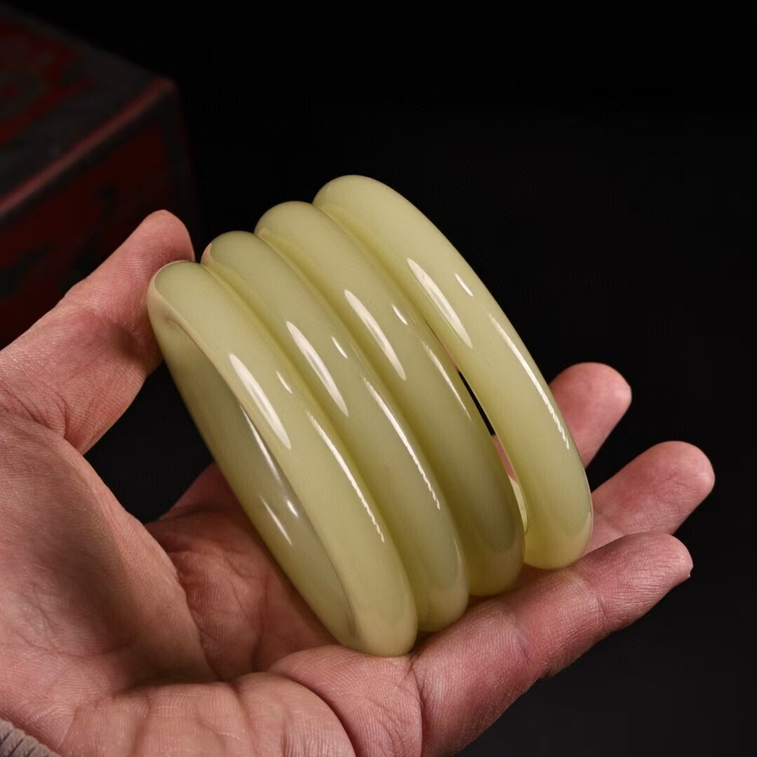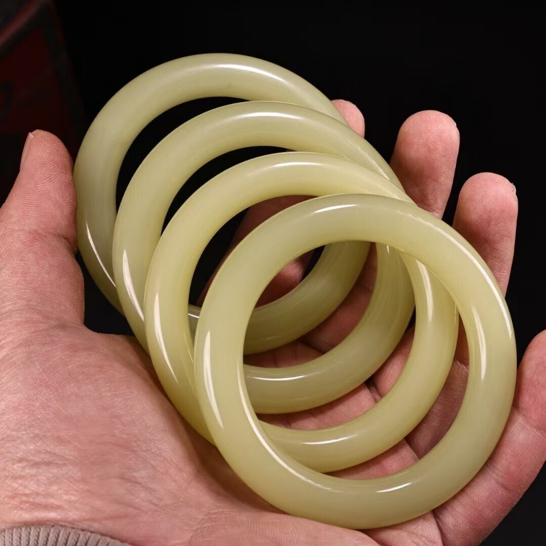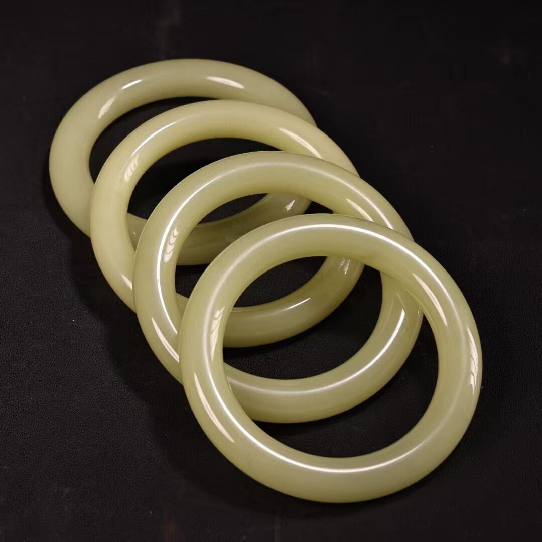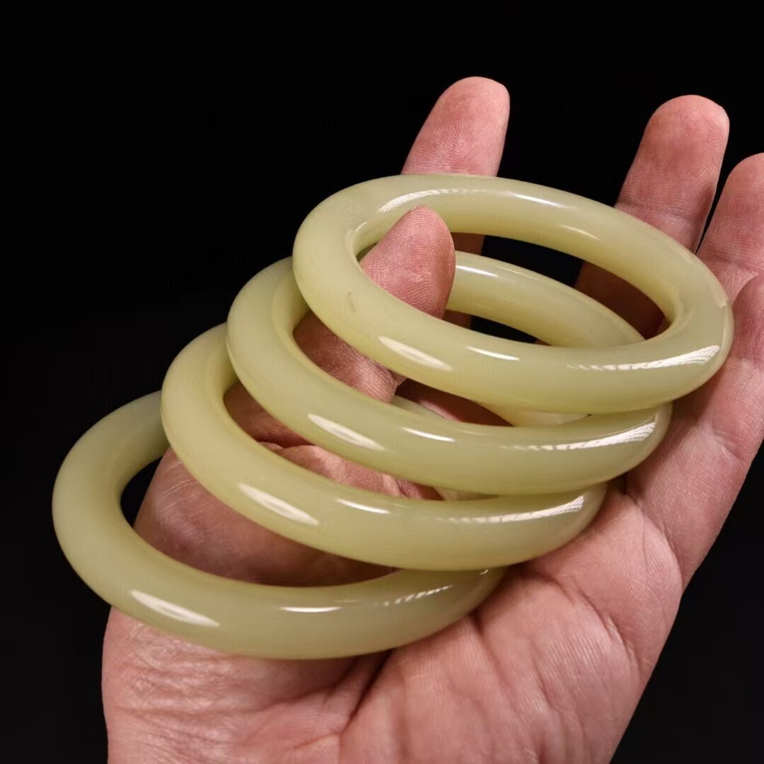 珍品旧蔵 清代宮廷御藏 中国古美術 罕見青白玉手 老漆器箱付 完品 重約80g 内径58-60mm 骨董品 收藏品 文房置物 古玩 装身具 R07072610