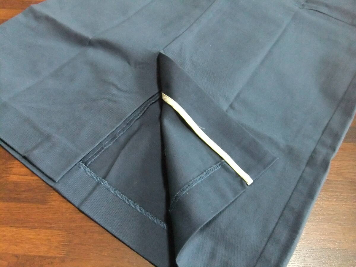 平置き実寸:約W33cm/ポケット下辺りの腰巾48cm・丈76.5cm・前スリット19.5cm・ウエストベルト部分巾7.5cm
