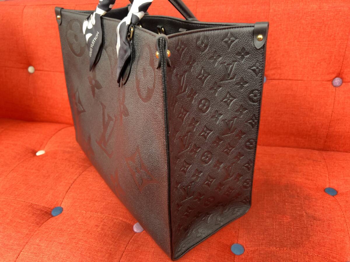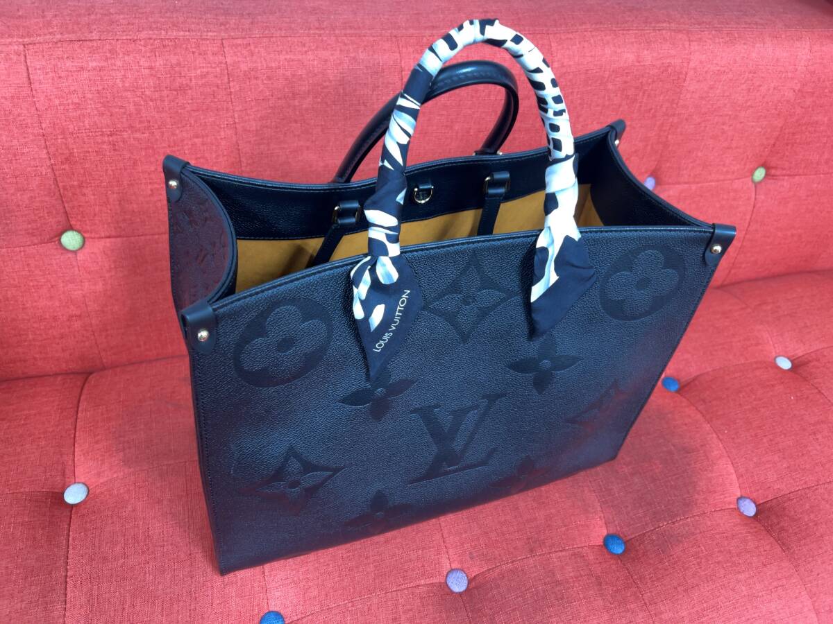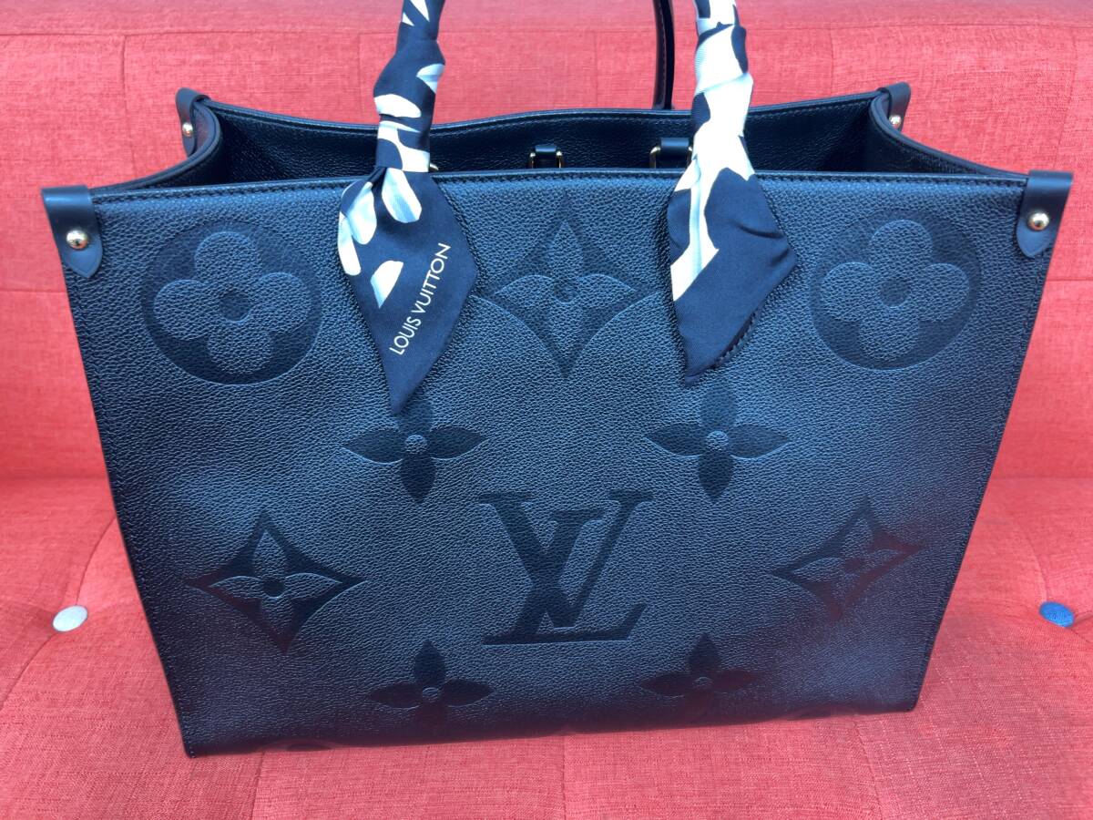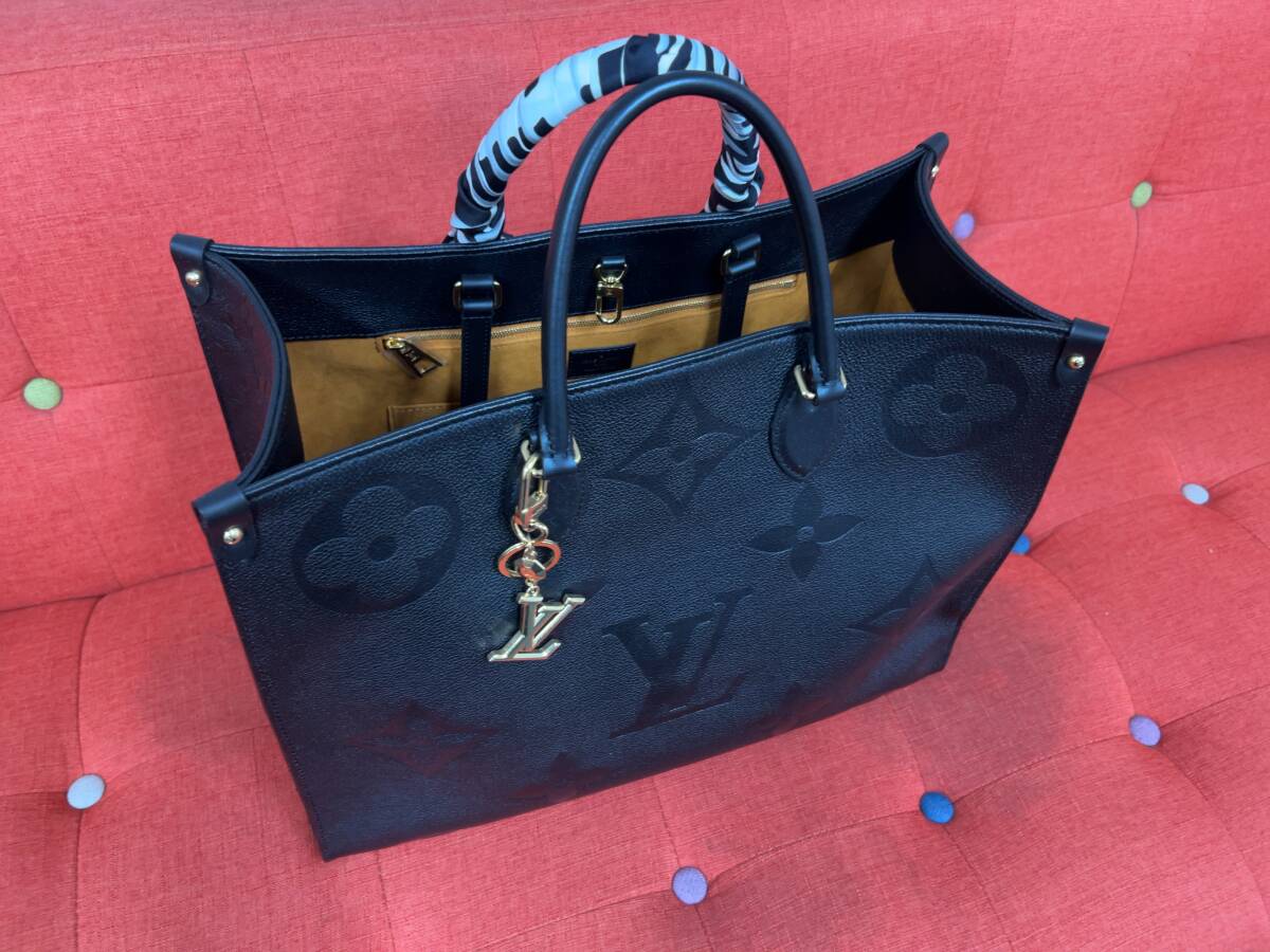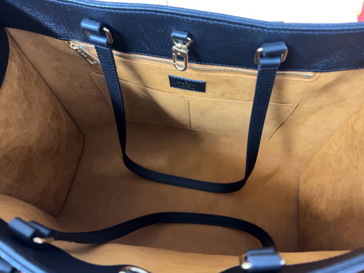 ブランド LOUIS VUITTON ライン モノグラム アンプラント モデル オンザゴーGM タイプ 2WAY カバン 肩掛け 形状トートバッグ 型番M44925 表記カラーノワール カラー ブラック 素材 モノグラムアンプラントレザー 仕様 開閉式オープン 内側 オープンポケット x2、ファスナーポケット x1 サイズ W40cm×H30cm×D17cm ハンドル:38cm ショルダー最長:70cm 幅は底部を高さは側部を計測しています。 実寸サイズには多少の誤差がある場合があります。 【状態説明】 未使用品ではありませんが傷、損傷等は特にないと言った感じ(バッグ)で非常に良好な状態だと思います。 裏面に関しても特に傷は感じられず非常に丁寧に使用をしていたんだなと言った印象です。 状態の見解には個人差がありますので状態を気にされる場合は必ずご遠慮ください。 説明内容、状態等の保障は一切ありませんのであらかじめご了承ください。 100%高島屋大阪店正規店購入品ですのでご安心ください。 レシート、保存袋、ケース、紙袋等も付属します。 購入時の付属品はすべて揃っていると思います。(画像参照) 正規品キーリング、ツイリースカーフが付属します。 スカーフにはやはり汚れ、変色等があると思いますがまったく悪くないと思います。 バッグ、キーリングは高島屋大阪店での購入ですがツイリーは購入店不明です。 ツイリー正規品で間違いないと思いますが正確な確認は出来ていません。 ファスナースライダーには新品購入時のビニールが付いています。 | ||
