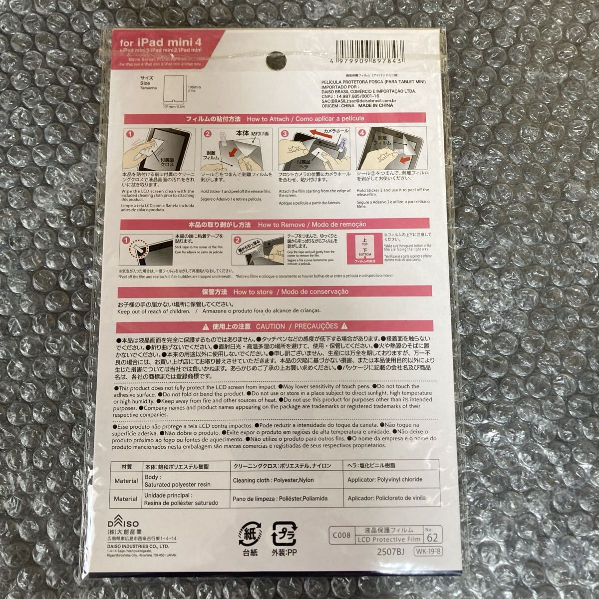 液晶保護フィルム/防指紋フィルム for iPad mini4/mini3/mini2/mini ダイソー 未使用