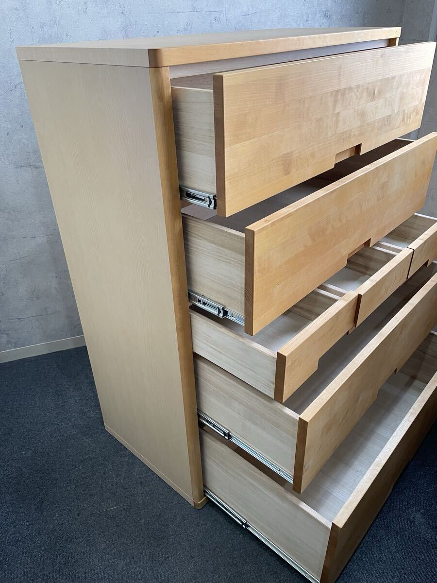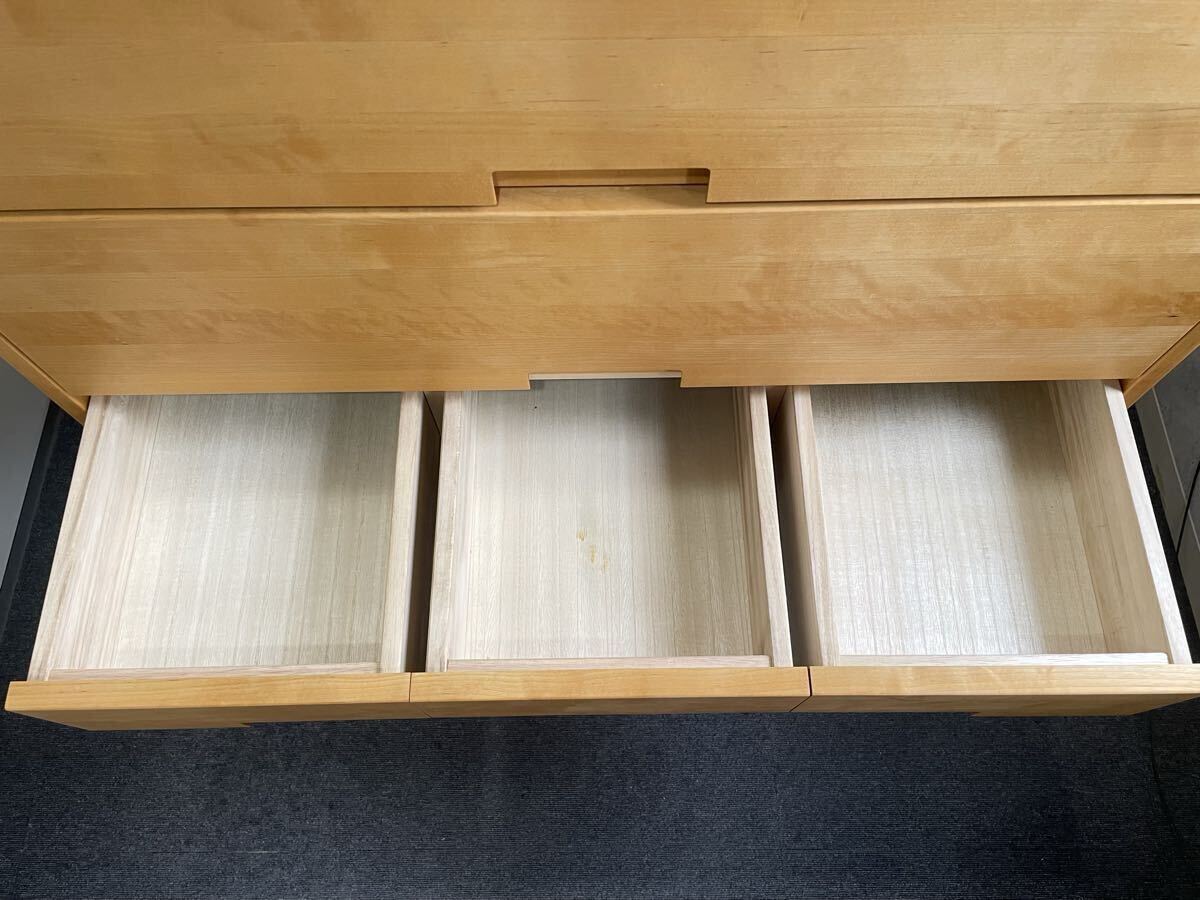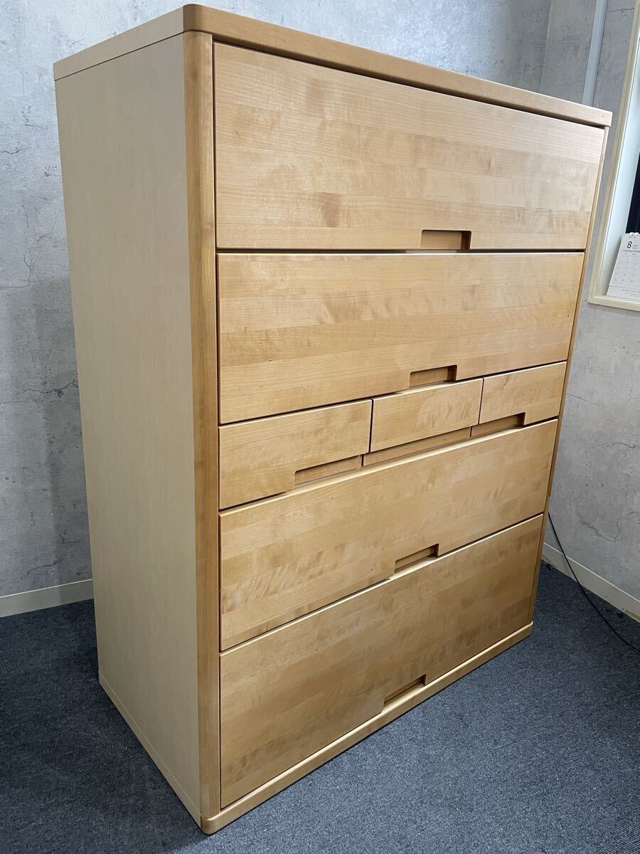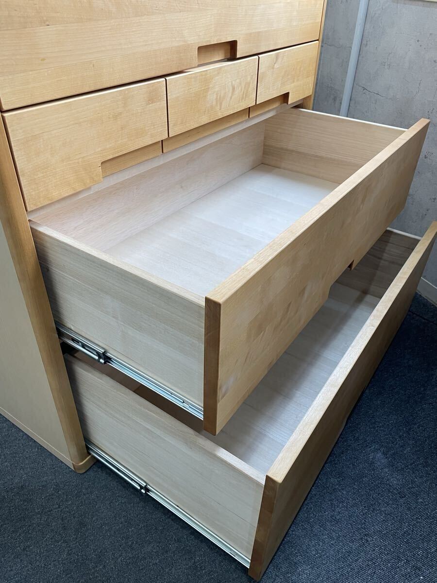 生活空間全般を総合的にプロデュースするインテリア業界最大手のIDC大塚家具で取り扱いのある、家具の聖地福岡県大川を拠点とする高野木工より、メープル材を使用した高級感漂う北欧モダンなチェストになります。