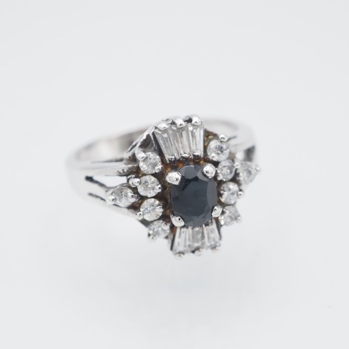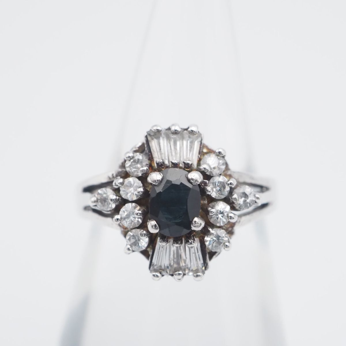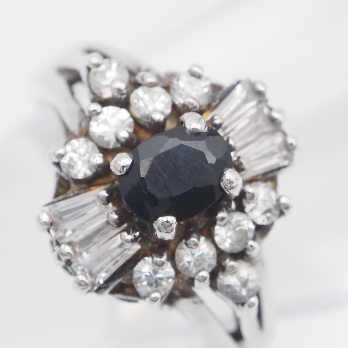 C535 サファイア? ブルースピネル? ダイヤモンド風 925刻印 リング デザイン シルバー 指輪 8号