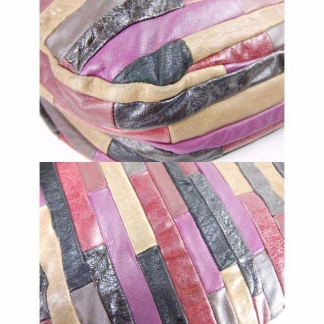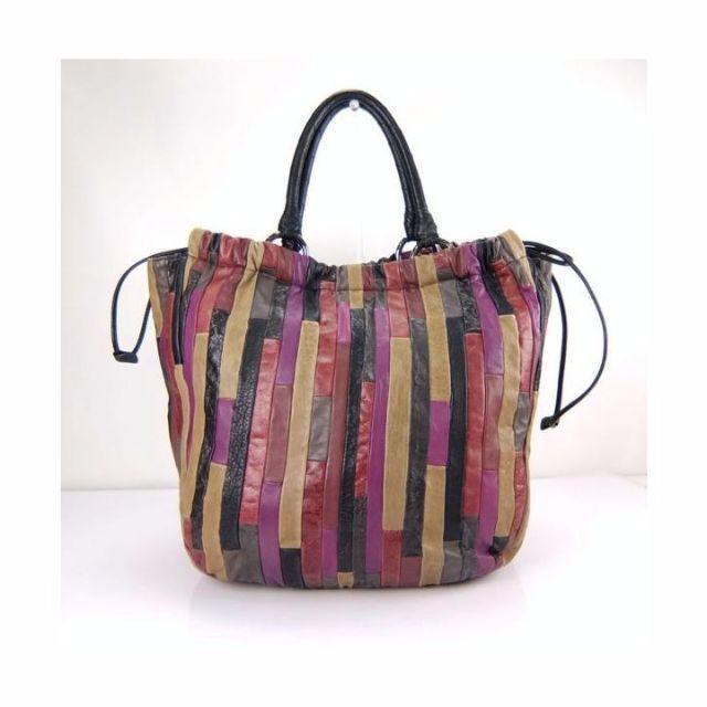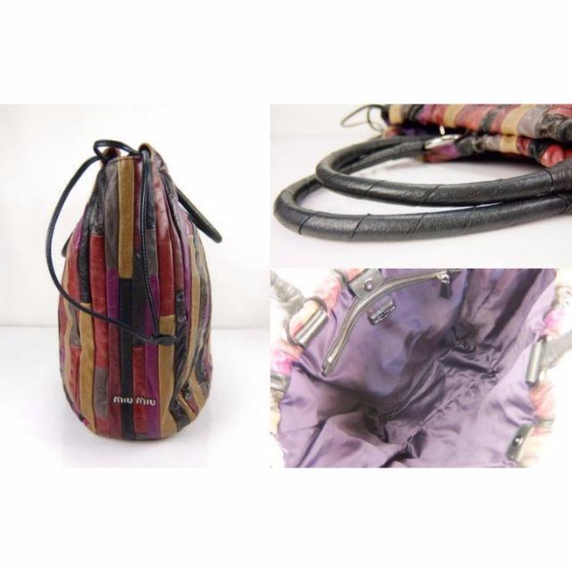 様々な素材のレザーのパッチワークがお洒落なミュウミュウのトートバッグです。