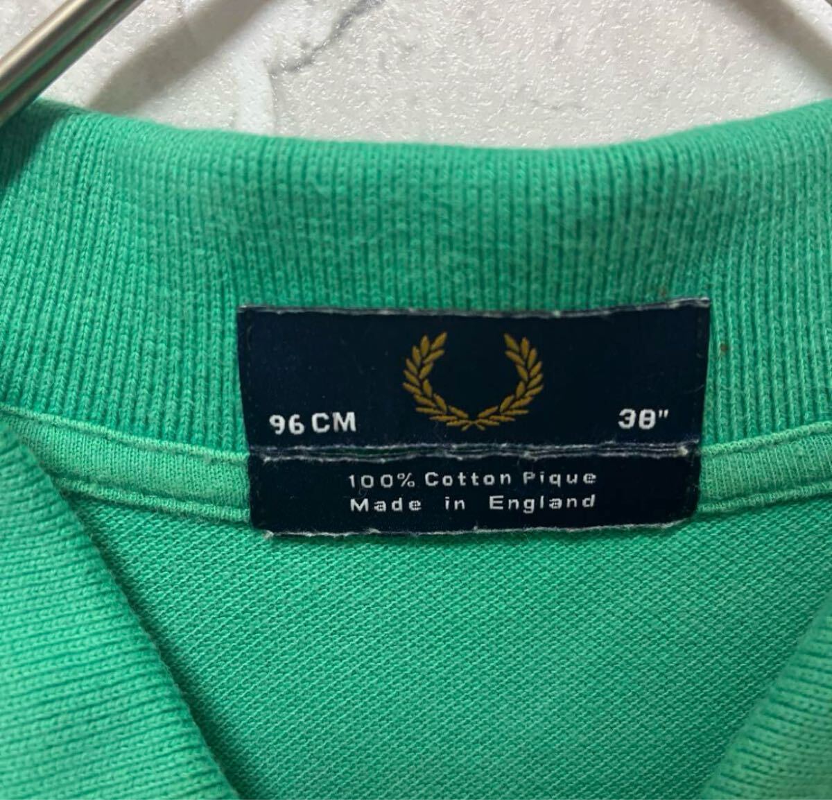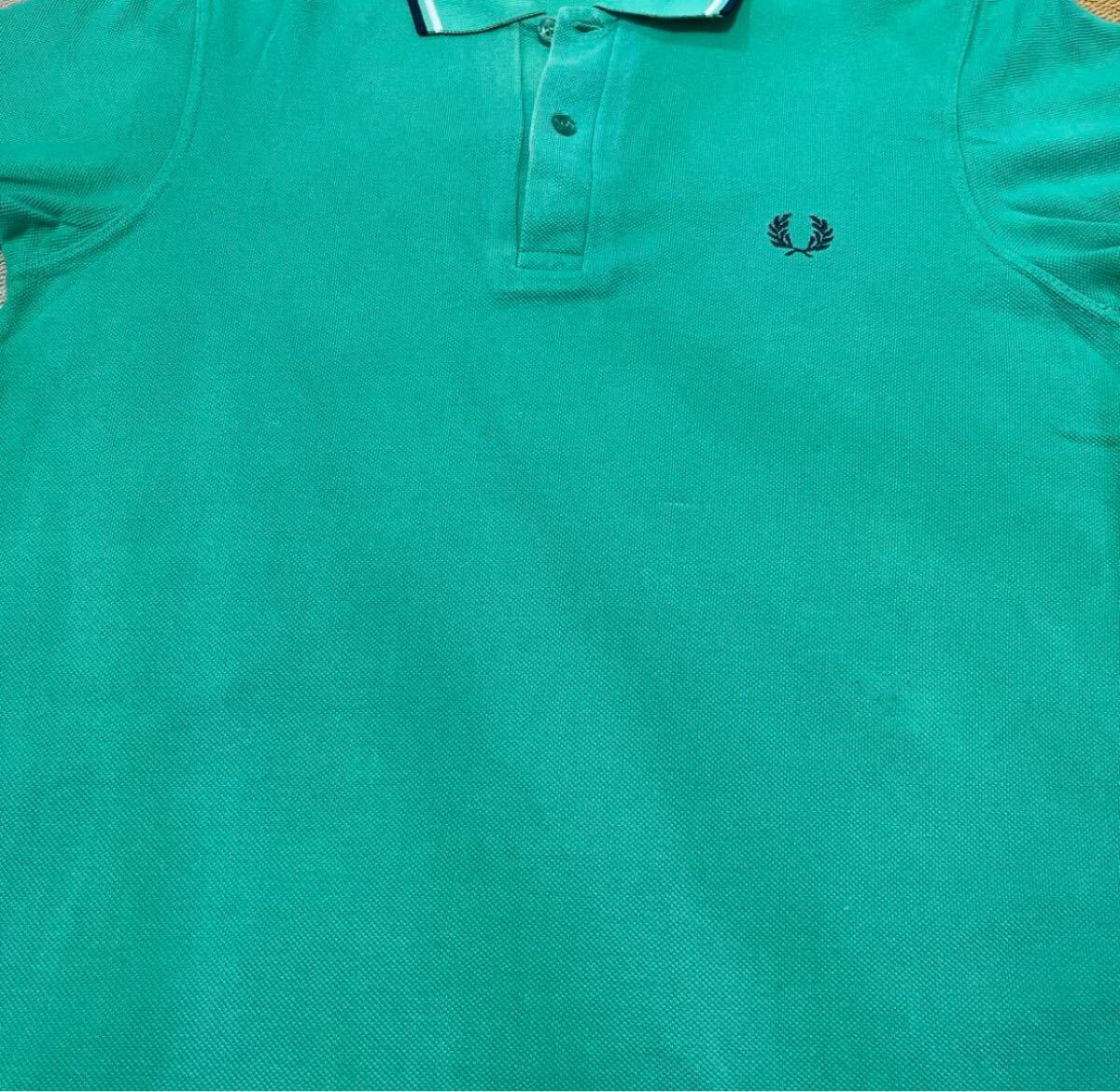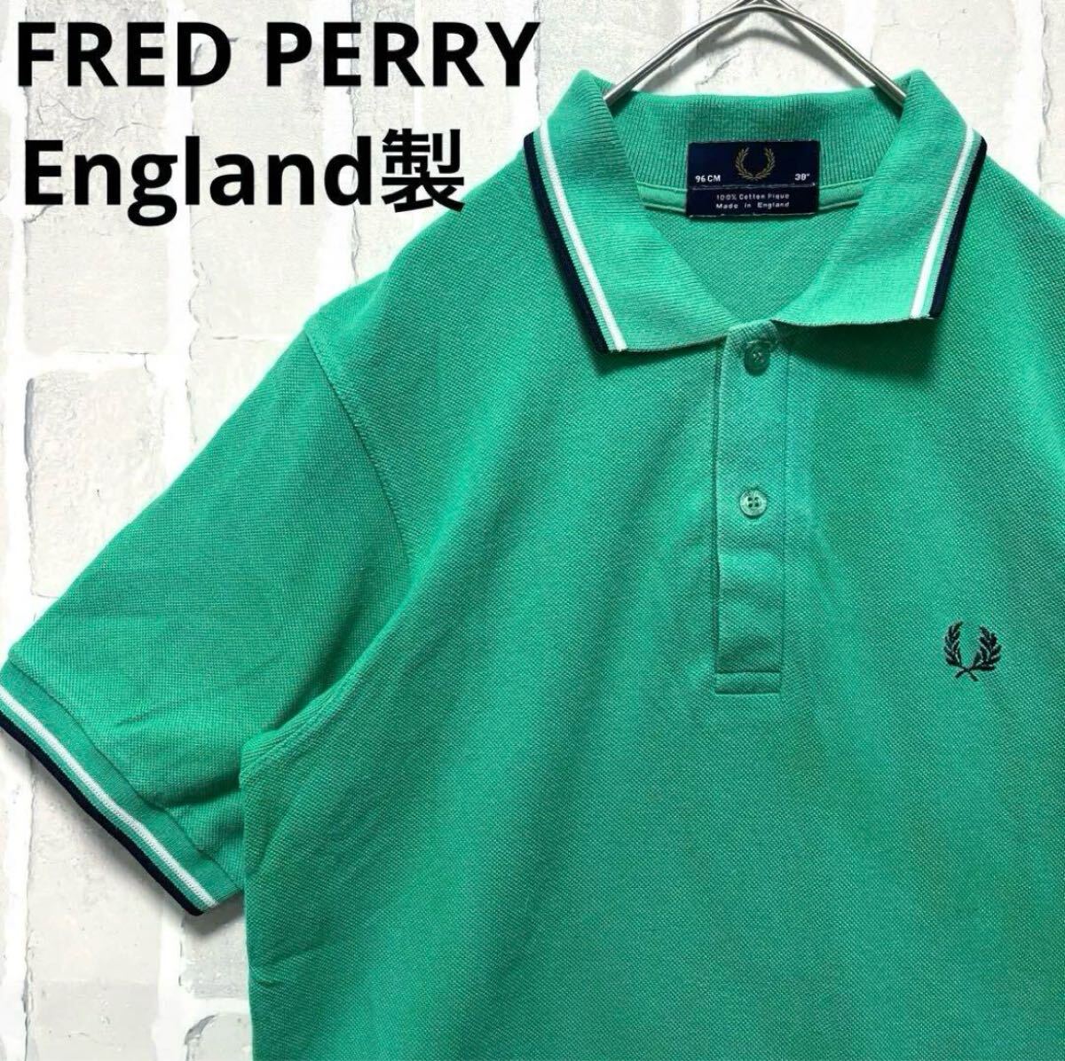 FRED PERRY フレッドペリー ワンポイントロゴ シンプルロゴ 刺繍 ポロシャツ サイズM 半袖 グリーン イングランド製 英国製 鹿の子 リブライン ノームコア 送料無料の出品です。