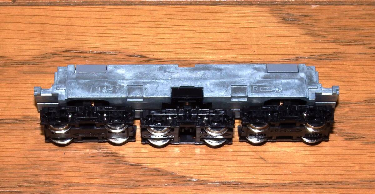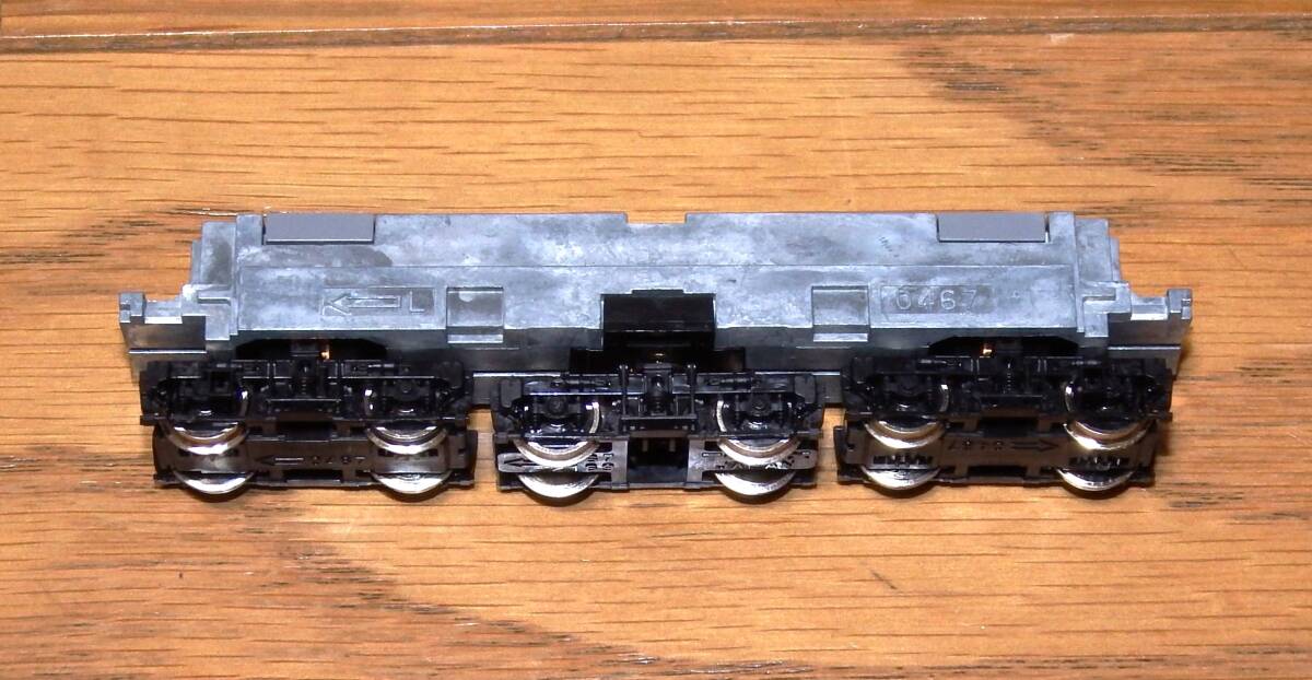 本品は旧製品用で、従来モーター(M-9)、銀色車輪の台車を装備しています。