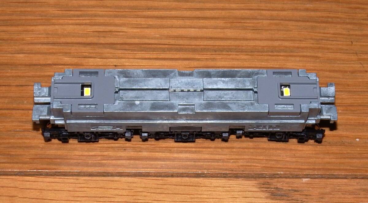 TOMIX EF65-1000用フライホイール付動力ユニット(M-9従来モーター、カプラー無、銀色プレート輪芯付車輪・電球色LEDヘッドライト改造)