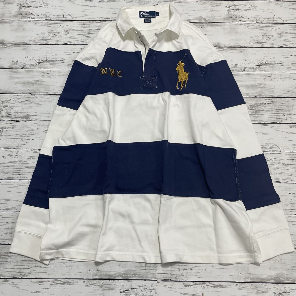 ネイビーとホワイトのボーダーに胸元の大きな刺繍ロゴとビッグポニーマークが印象的な一枚。