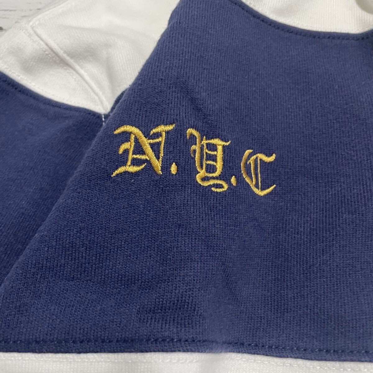 左胸にはN.Y.Cの刺繍ロゴも施されており、クラシックなラルフローレンらしいデザインです。