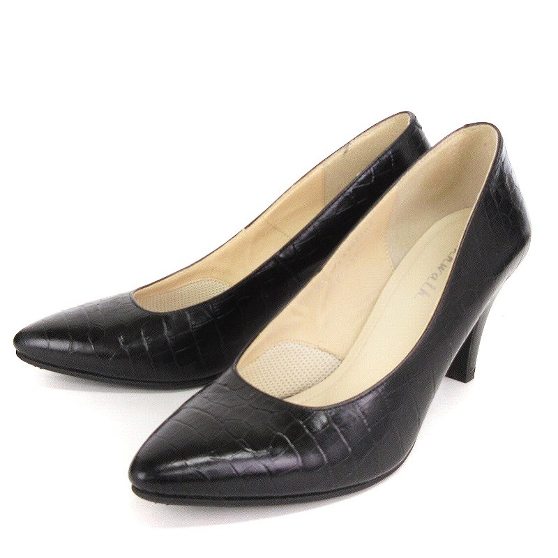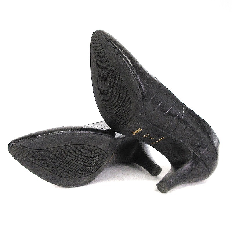 アシックス asics 美品 ランウォーク RunwaLK パンプス レザー クロコ型押し 黒 ブラック 23.5cm 靴 レディース