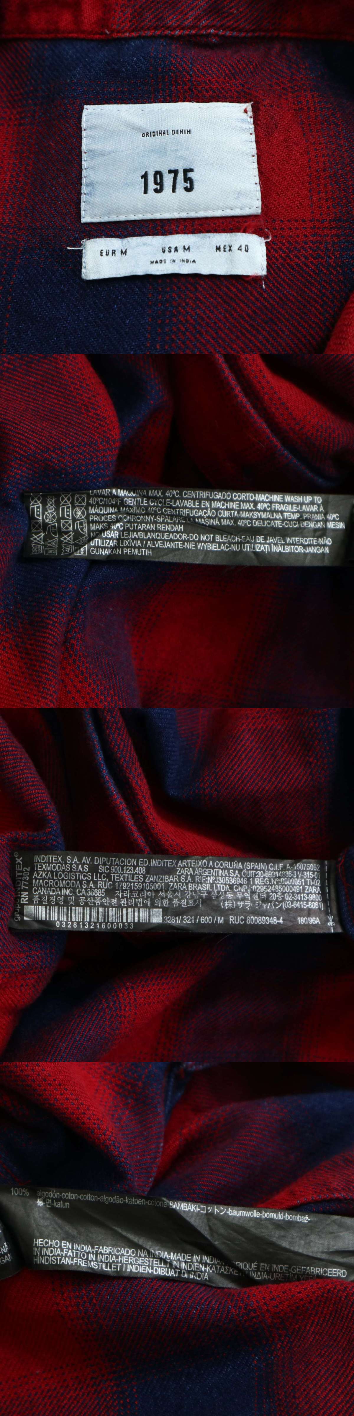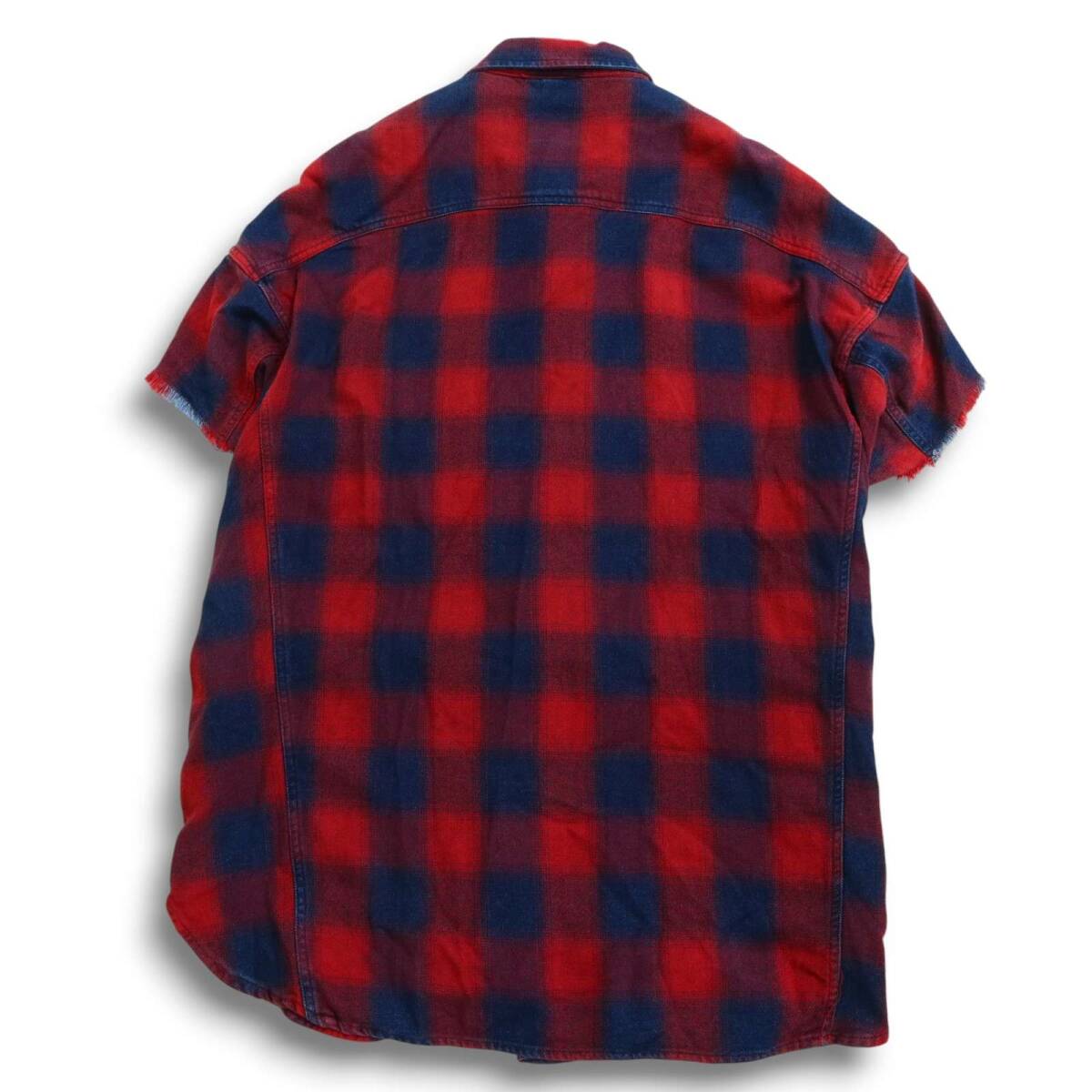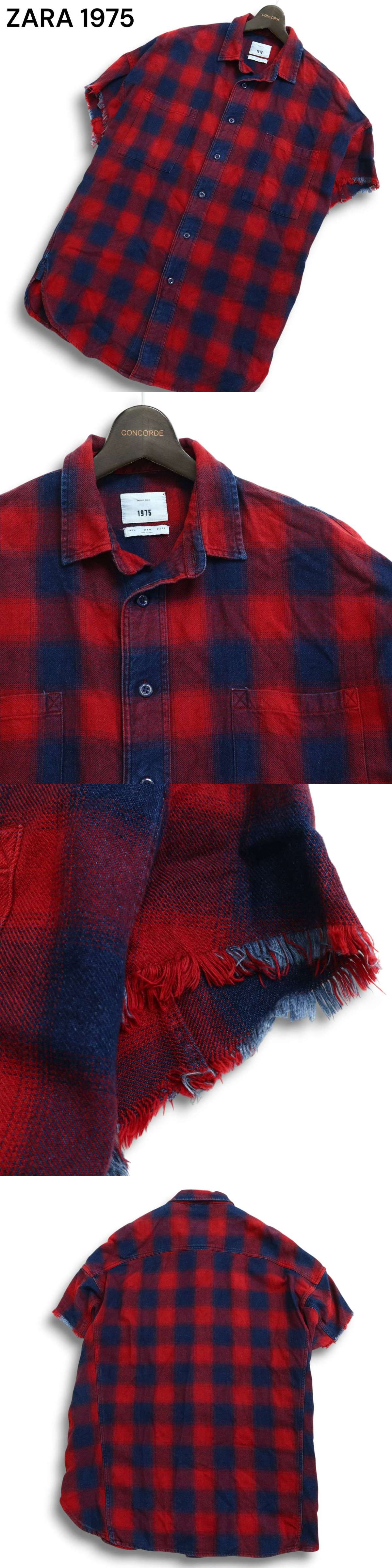 ZARA 1975 ザラ マン 春夏★ カットオフ 半袖 オーバーサイズ インディゴ チェック シャツ Sz.M メンズ