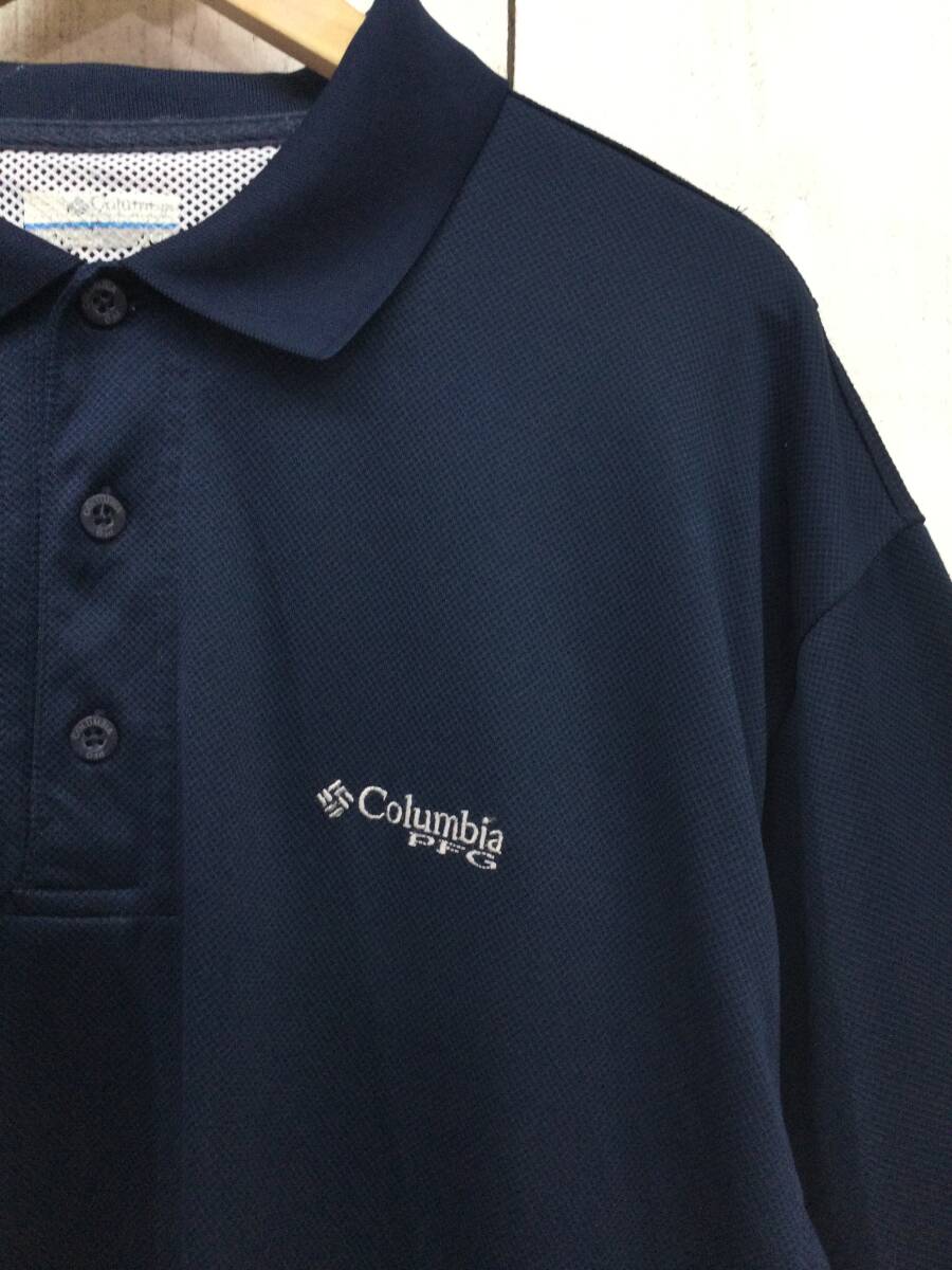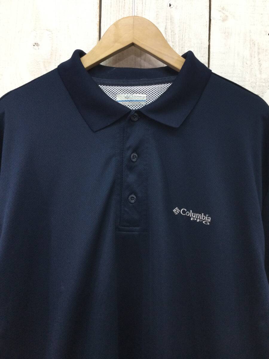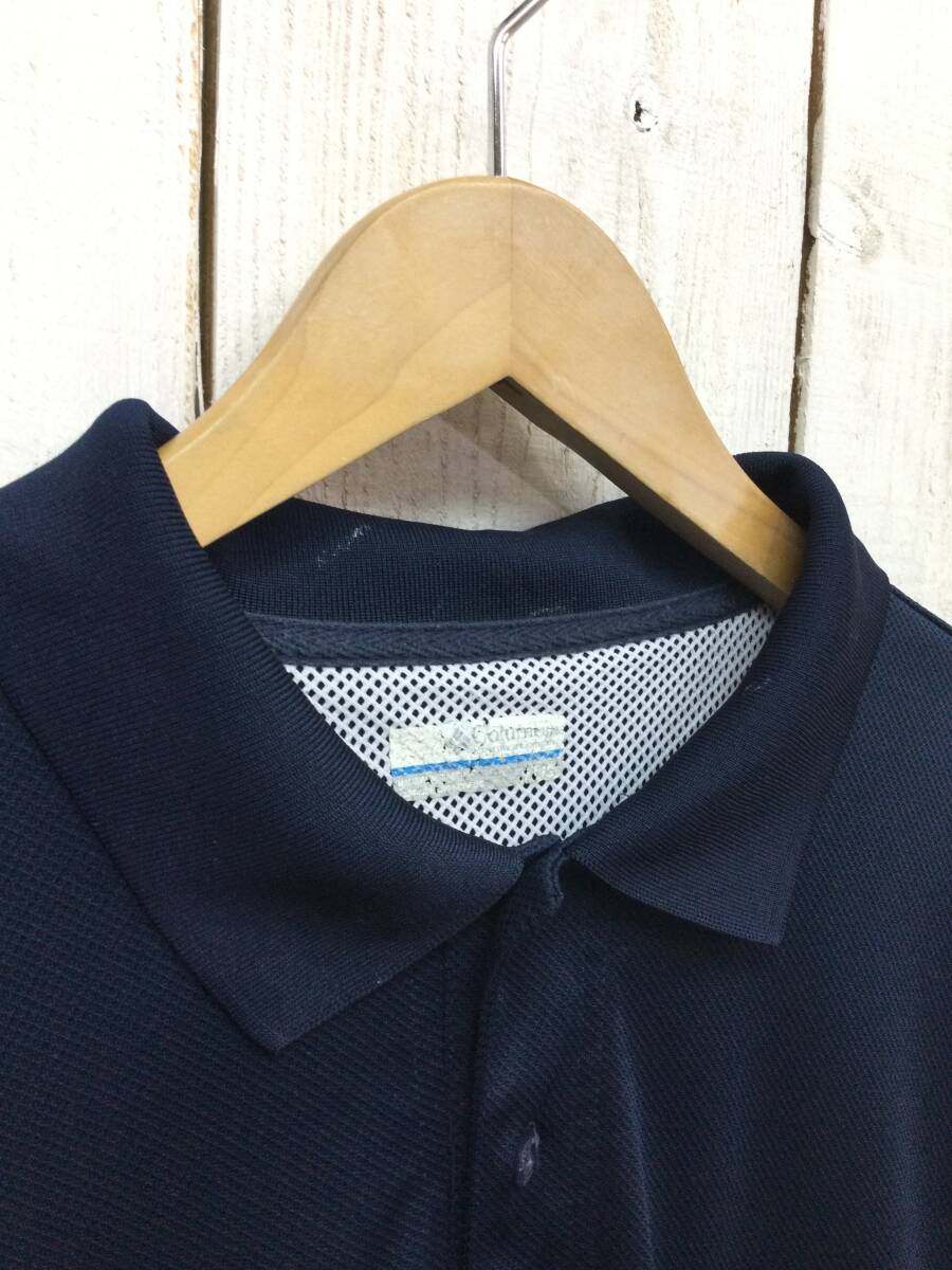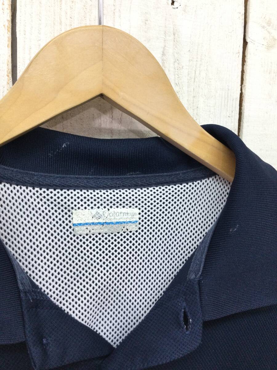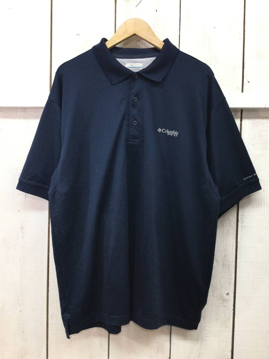 COLUMBIA コロンビア PFG OMN-SHADE 半袖ポロシャツ ドライポロシャツ ネイビー系 メンズL 良品