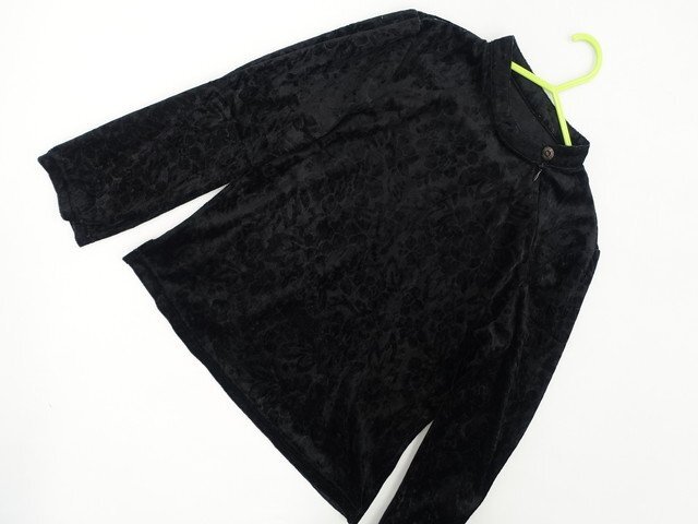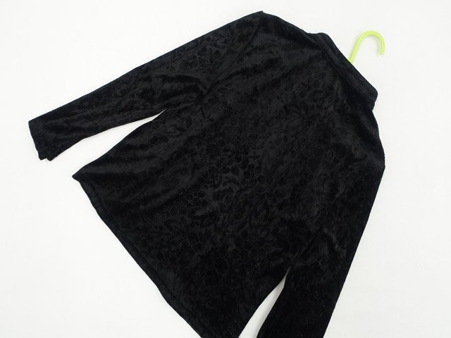 長袖 デザインネック ベロアカットソー 7P ブラック 花柄 【メール便可】