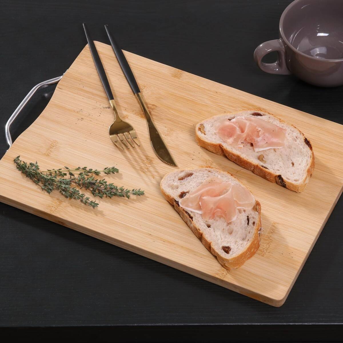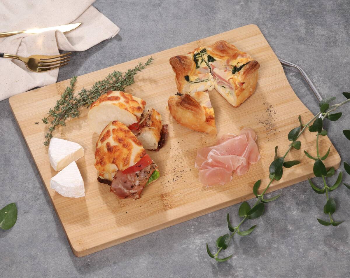 アルミ取っ手がかわいい食材を切るのに充分なサイズ感のカッティングボードです。 バンブー(竹)を使用しており、優れた抗菌・防臭効果を持っています。 まな板としてだけではなく、食材をきれいに盛り付ければおしゃれプレーとしてもしようできます。