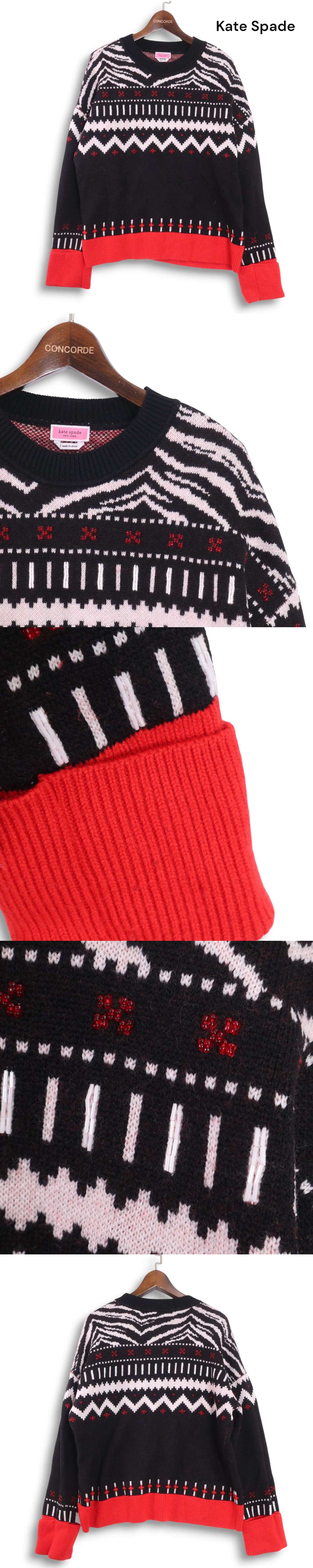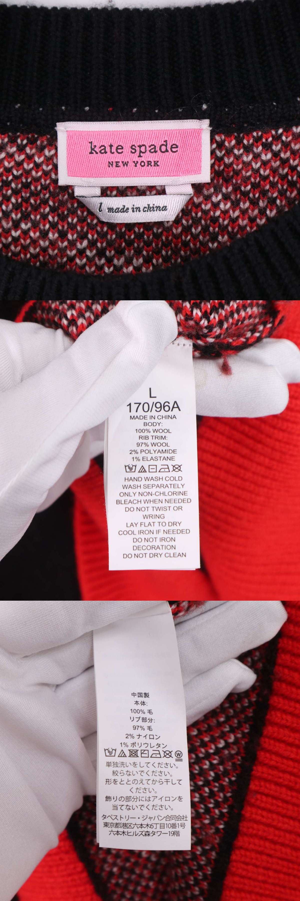 Kate Spade ケイトスペード 秋冬 ウール100%★ ビーズ装飾 デザイン セーター プルオーバー ニット Sz.L レディース