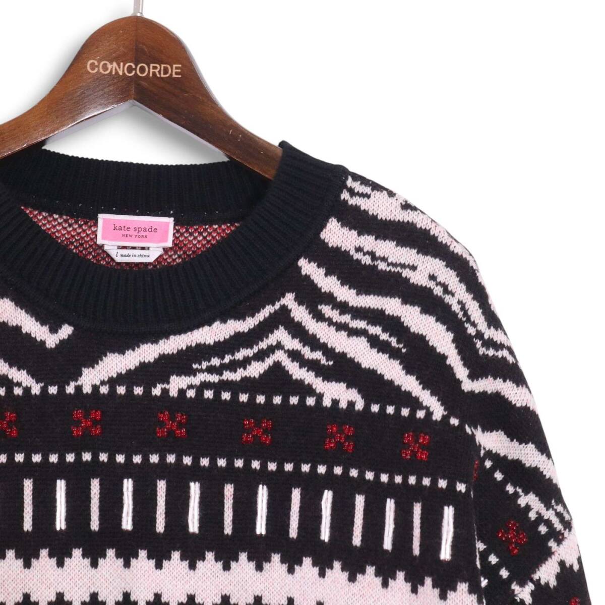 Kate Spade ケイトスペード 秋冬 ウール100%★ ビーズ装飾 デザイン セーター プルオーバー ニット Sz.L レディース
