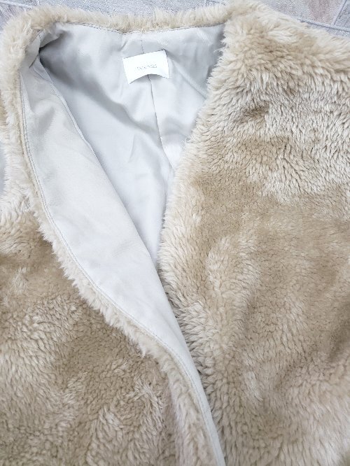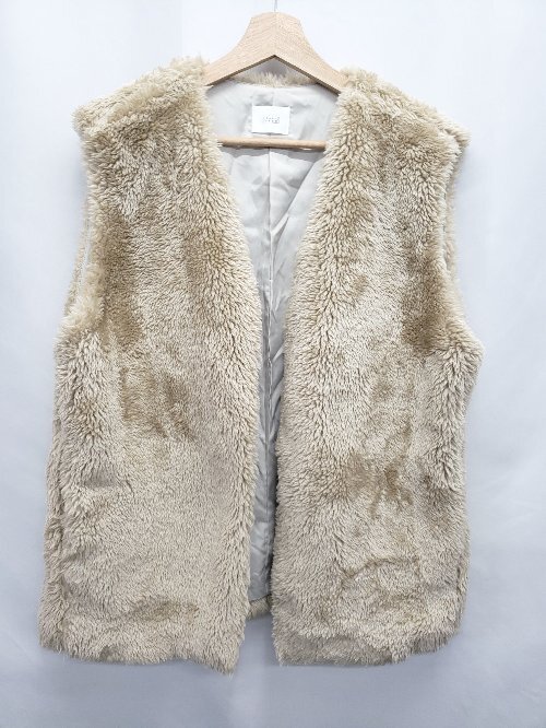 ◇ ⊇ LOWRYS FARM ローリーズファーム フェイクファー ノースリーブ ベスト サイズF ベージュ系 レディース E