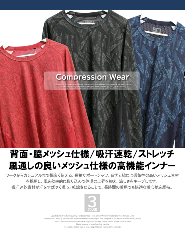 | 商品名 | 【新品】 4L レッド コンプレッション インナー メンズ 大きいサイズ メッシュ ストレッチ 吸汗速乾 夏用 総柄 長袖 Tシャツ |