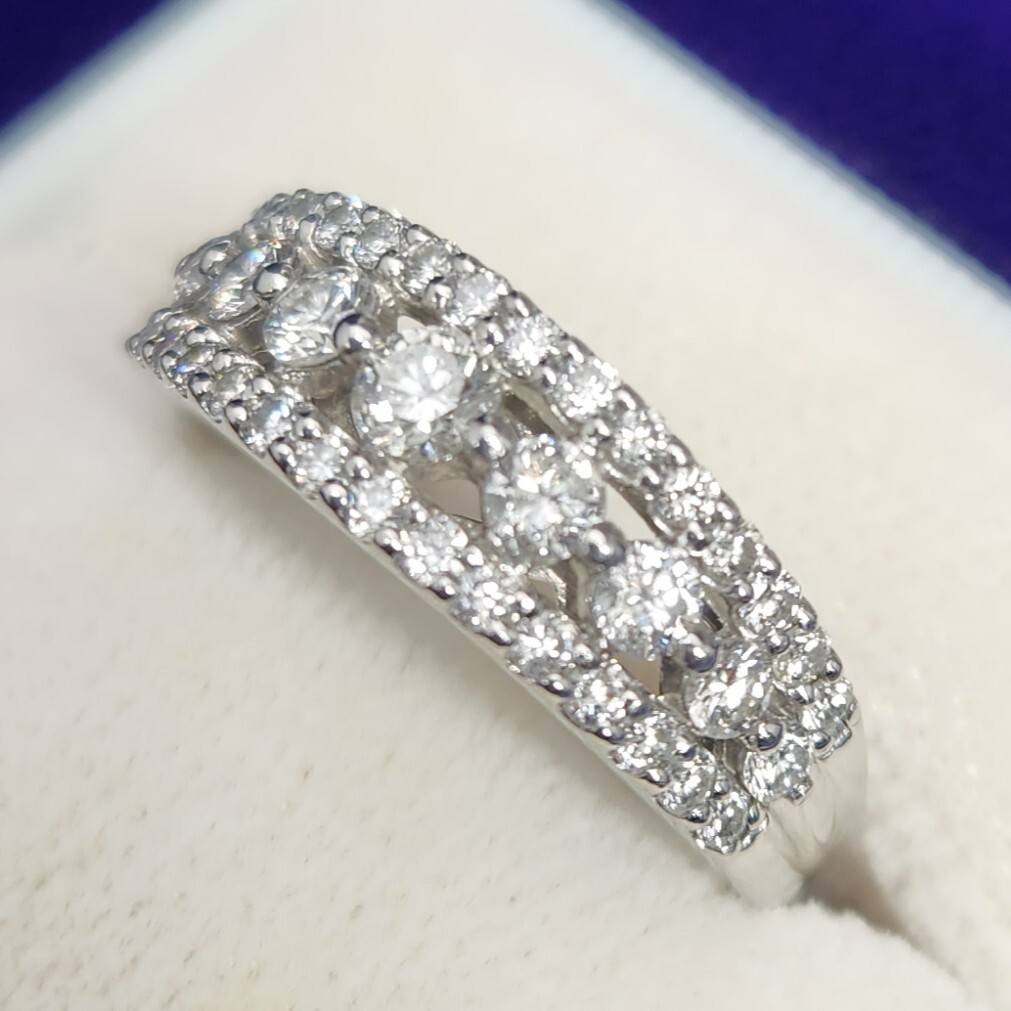 指輪 豪華ダイヤモンド0.75ct プラチナPt900 デザインリング 煌びやかな指輪 5.1g サイズ約11号 綺麗 D-78