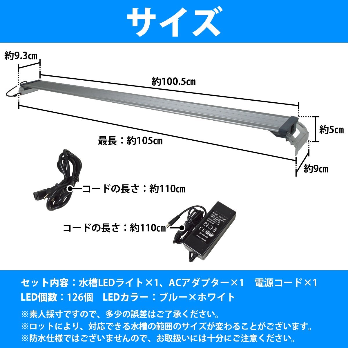 【送料無料】100cm-105cm 水槽用 照明 LED ライト ブルー×ホワイト 青/白 シルバー枠 アクアリウム ライト LED 照明 水槽 サンゴ 熱帯魚