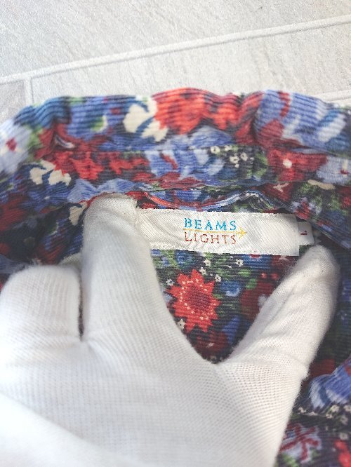 ◇ ⊇ BEAMS HEART ビームスハート コーデュロイ 総柄 長袖 シャツ サイズL レッド マルチ レディース E