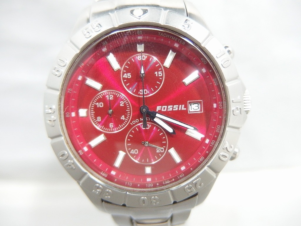フォッシル FOSSIL クオーツクロノグラフ腕時計 アナログ 赤・銀 CH-2389