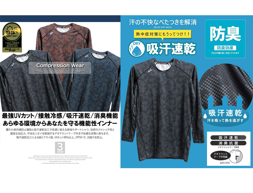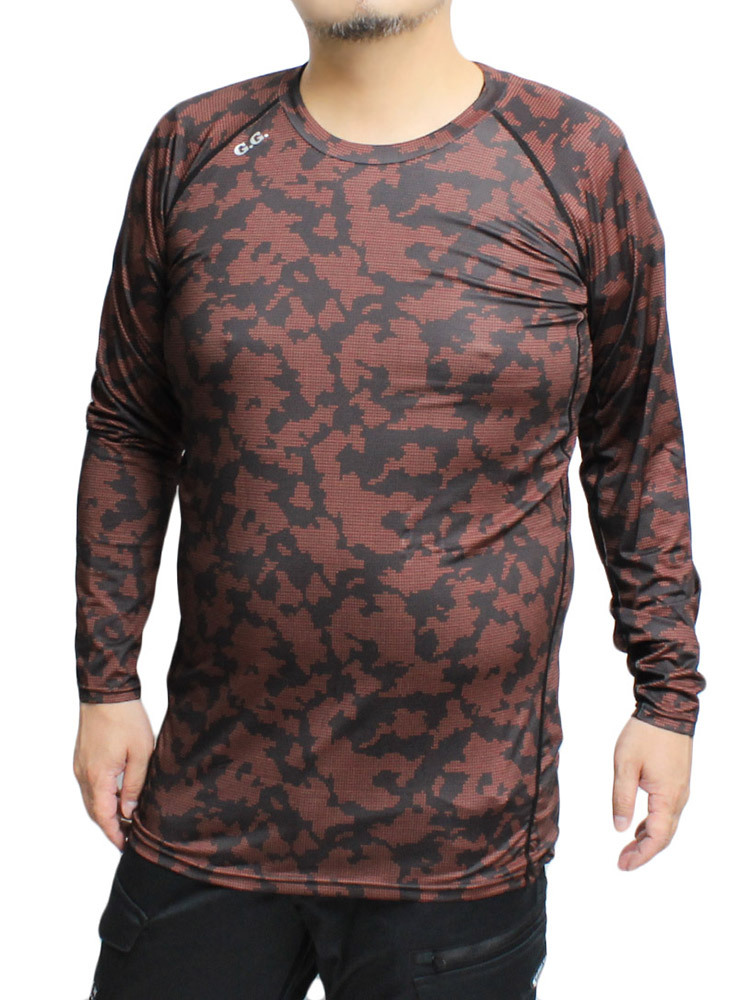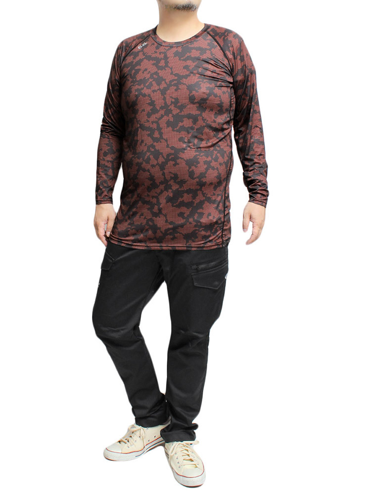 商品名 | 【新品】 3L レッド コンプレッション インナー メンズ 大きいサイズ 接触冷感 ストレッチ UVカット 吸汗速乾 消臭 夏用 総柄 長袖 Tシャツ |