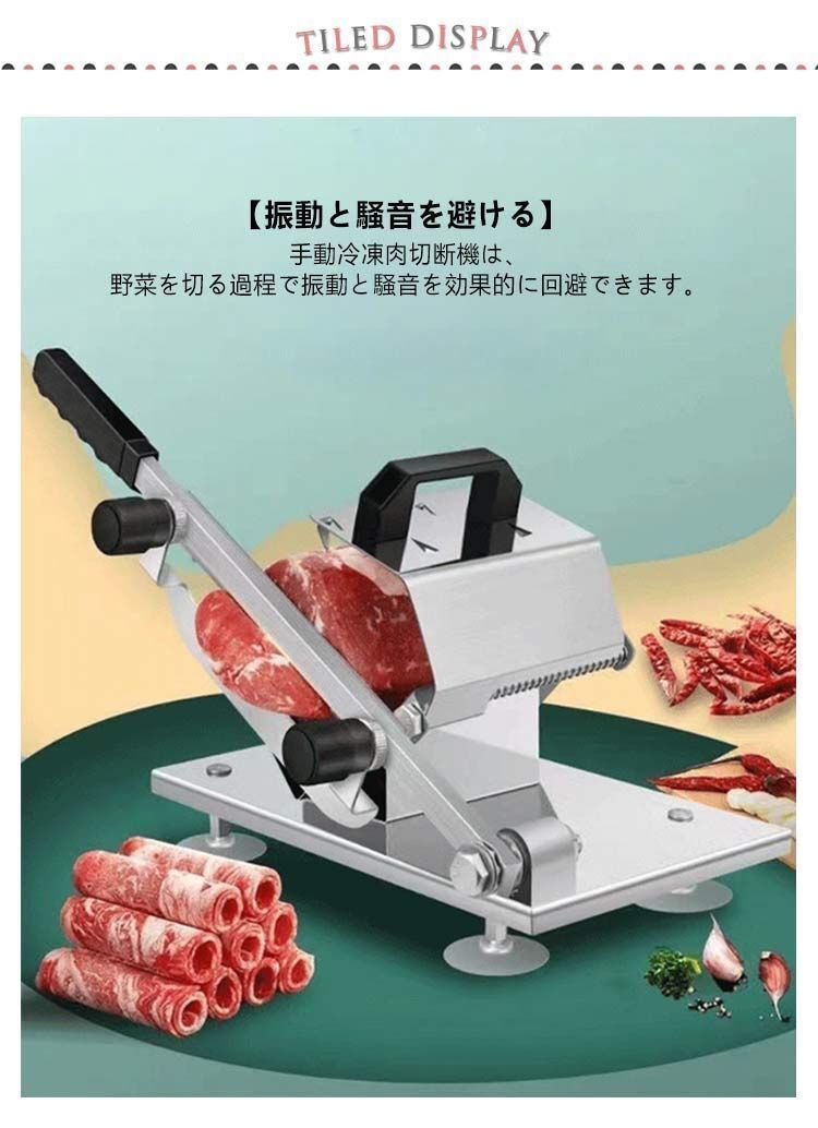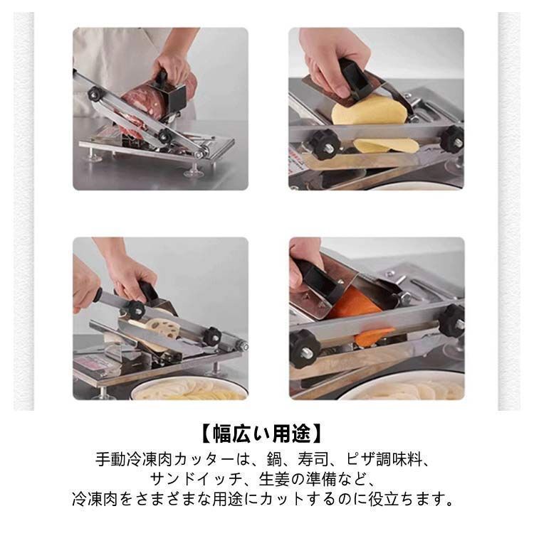 【幅広い用途】手動冷凍肉カッターは、鍋、寿司、ピザ調味料、サンドイッチ、生姜の準備など、冷凍肉をさまざまな用途にカットするのに役立ちます。