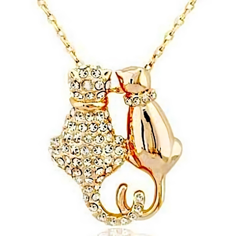 こちら仲睦まじく寄添う仲良しの猫カップル、ダイヤモンドK18GFゴールドネックレスとなります。